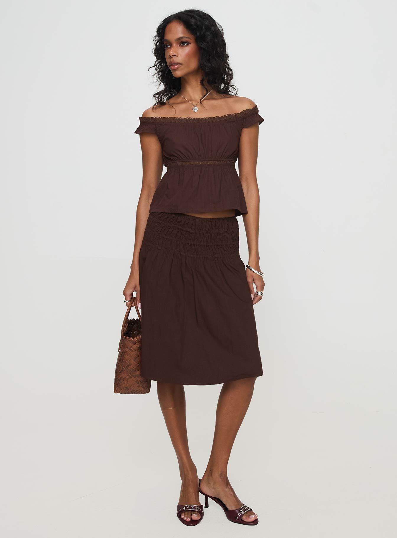 Shop Neleta Midi Skirt Brown at Princess Polly. Buy now, pay later with Afterpay. Enjoy free shipping & returns. T&C's apply.