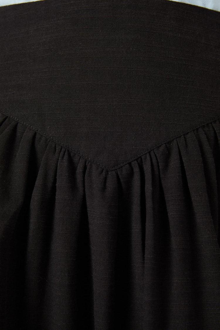 The Nell Gathered Yoke Skirt by Princess Highway is a timeless piece with a sweet vintage touch. Made from a soft cotton-viscose blend in classic black, this mid-length skirt features a flattering wide waistband with a subtle V-shaped yoke and gentle gathers for added movement and charm.Finishing at the knee with a clean back zip closure, it’s an easy-wear staple for everyday elegance or dressed-up moments.Fabric Composition50% Cotton, 50% ViscoseCare InstructionsCold delicate machine washWash inside out with like coloursDo not wring, bleach, soak or tumble dryLine dry in shadeWarm iron on reverse if requiredDo not dry cleanModel DetailsSienna wears a size 8Height: 173cm | Bust: 83cm | Waist: 61cm | Hips: 93cm