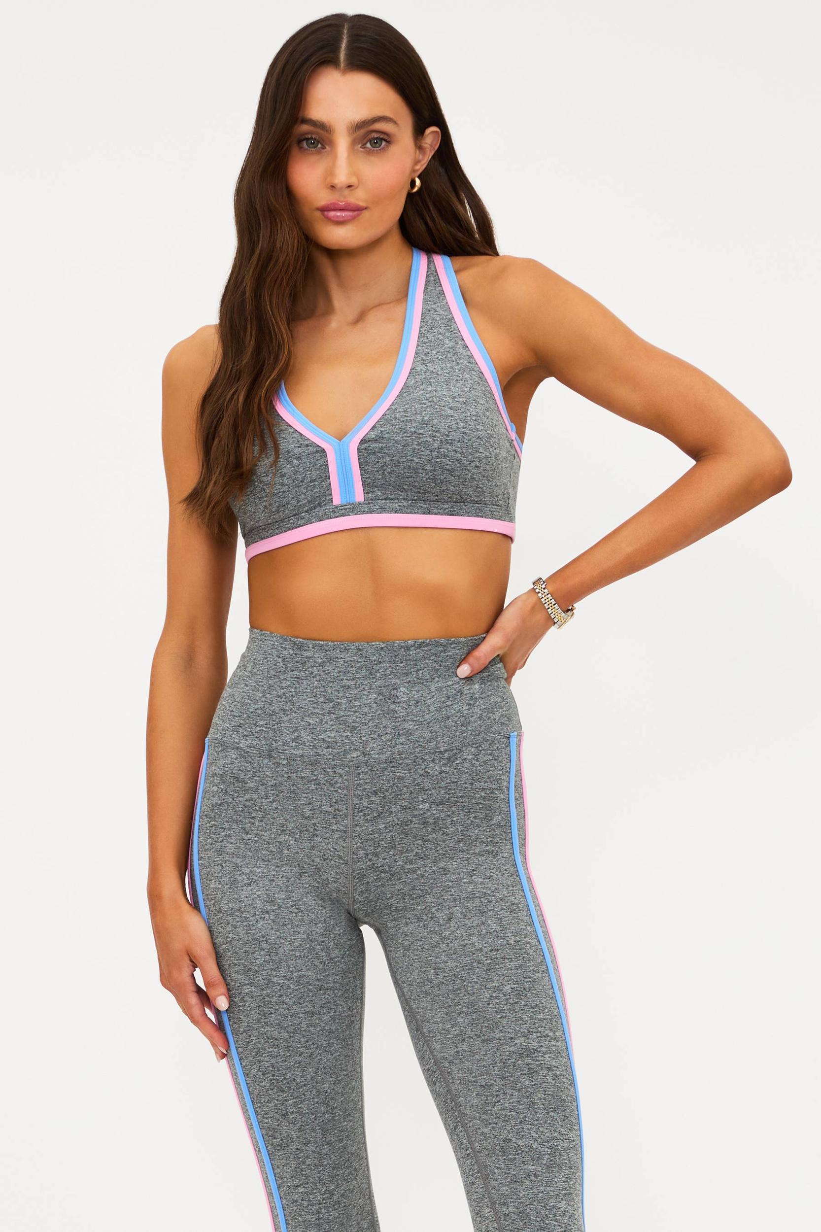 Soft Serve Fabric High support Removable soft cups Thick fixed straps with a racerback Color block contrast binding Heather Butter soft, double brushed finish 4-way stretch Moisture wicking Not sold as a set Model is wearing size small