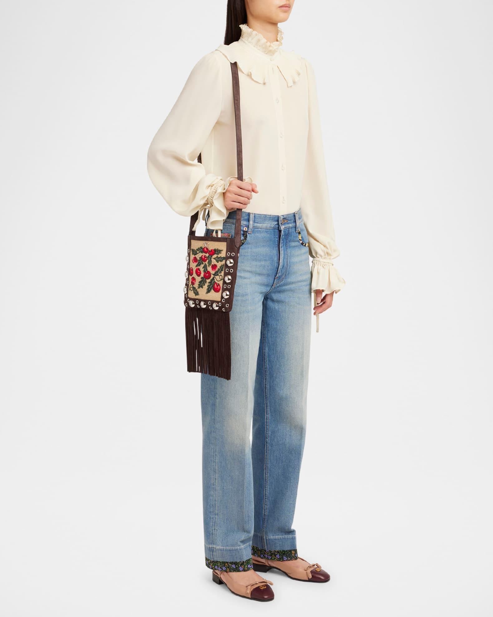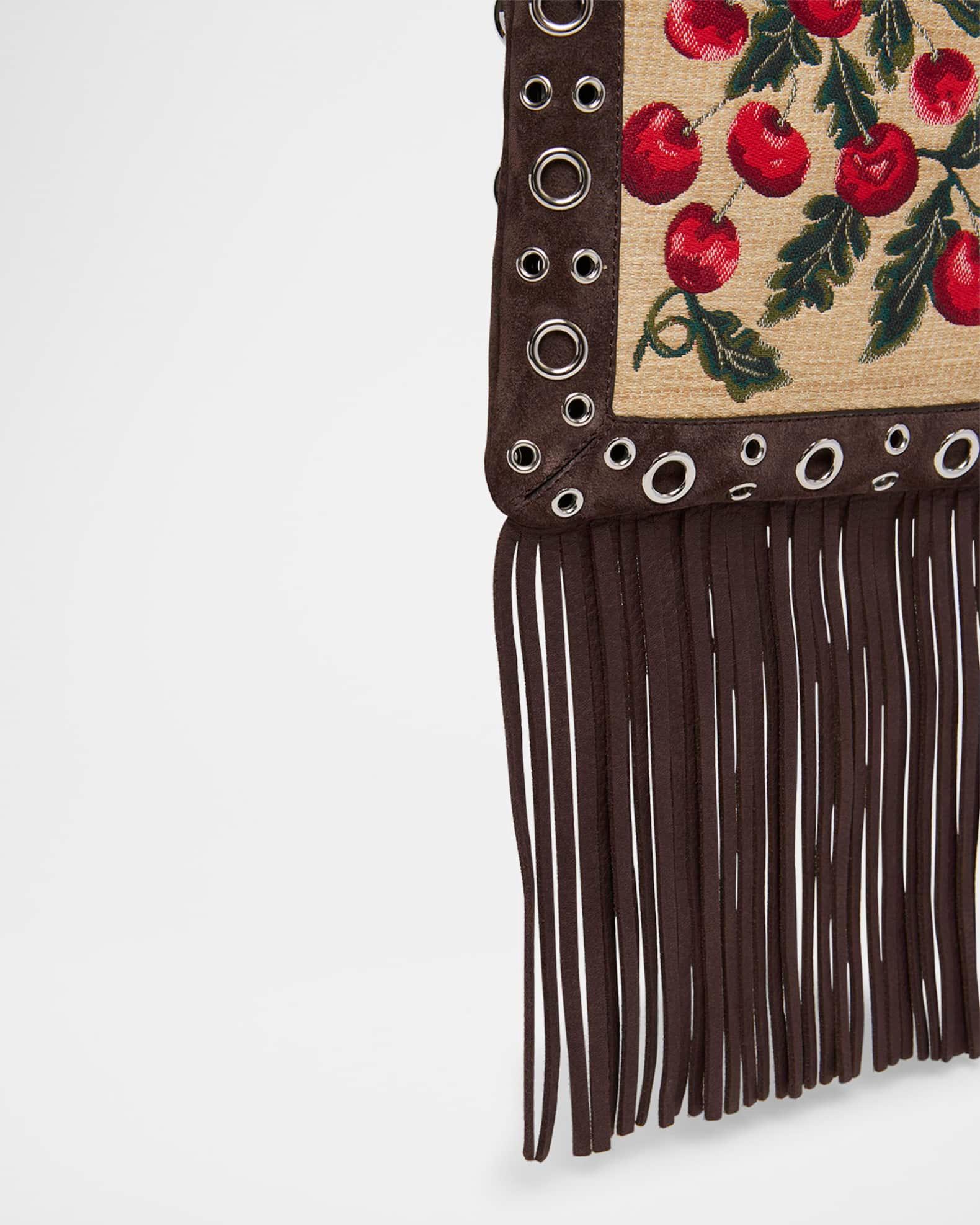 Nellcote Small Fringe Jacquard Cherries Suede Crossbody Bag