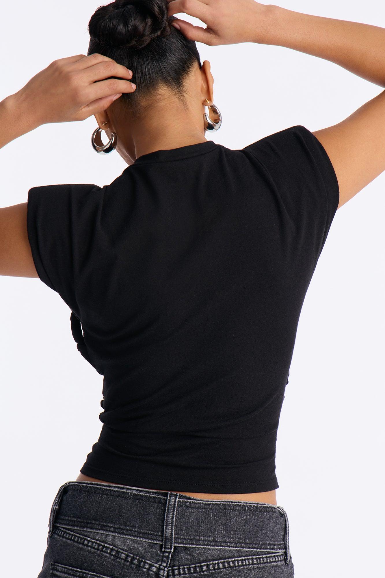 Nellie Twist Shoulder Pad Short Sleeve Top - Black Female