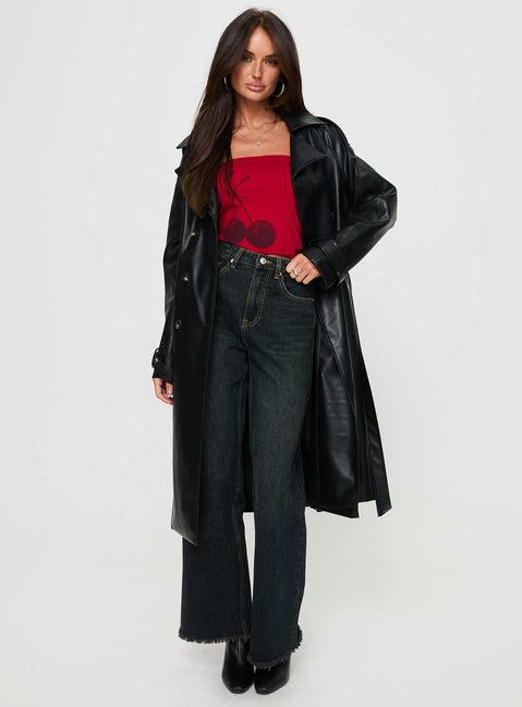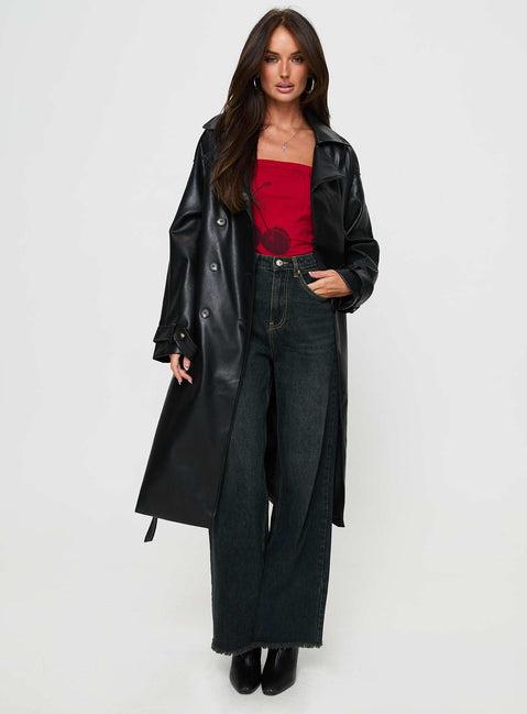 Womens Katija Faux-Leather Single-Breasted Trench Coat