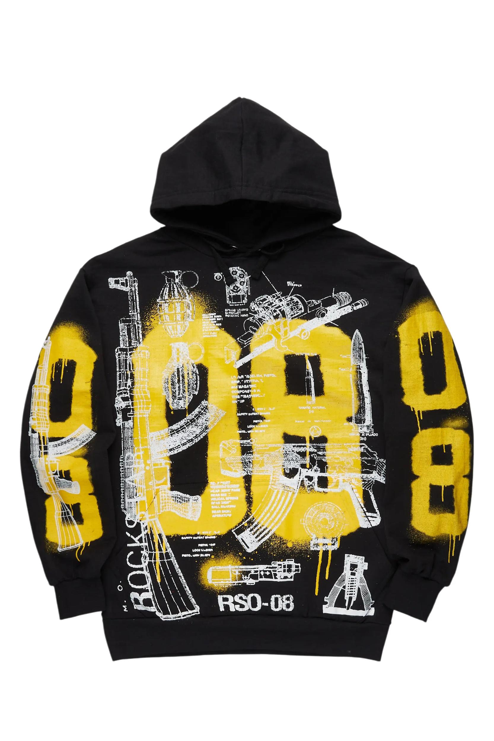 An urban streetwear hoodie for men in black. Designed with organic cotton and custom detailing for a dope everyday style. Drawstring hood Long sleeves Ribbed knit trims Kangaroo pocket Pullover style Relaxed-fit Printed RSO logo Deconstructed hem