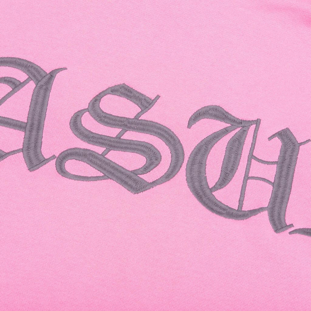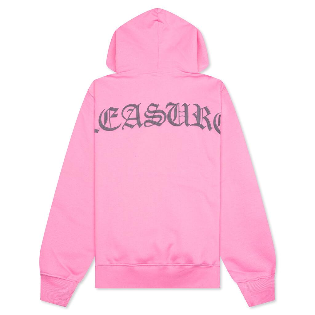 Pleasures introduces the Neural Hoodie in its latest collection. Crafted from cotton and polyester, this hoodie has ribbed cuff and hemline for a comfortable fit. Featuring a small embroidered logo in Old English font at the chest and a large logo across the back, adding an edgy aesthetic to the design and completing the look. 72.5% Cotton, 27.5% Polyester Embroidered logos Fixed hood Kangaroo pocket Ribbed cuff Ribbed hemline Style no: P25SU010-PINK P25SU010 PINK