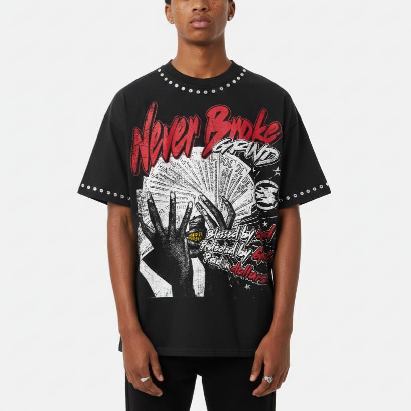 Never Broke God Dollar Vintage Rhinestone Graphic Cotton T-shirt