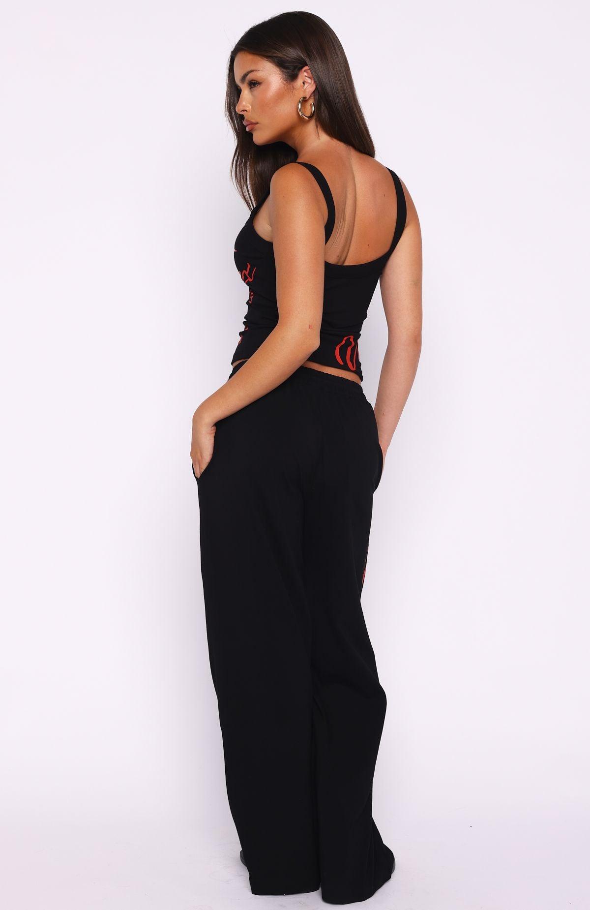 Comfort is an attitude, and this set embodies it. The Never Fades Track Pants Black feature a thick elasticated waistband, cursive White Fox text on leg side front, wide leg design and contrast colour detailing. Pair with the matching Never Fades Ribbed Tank Top Black for the cutest matching moment!
