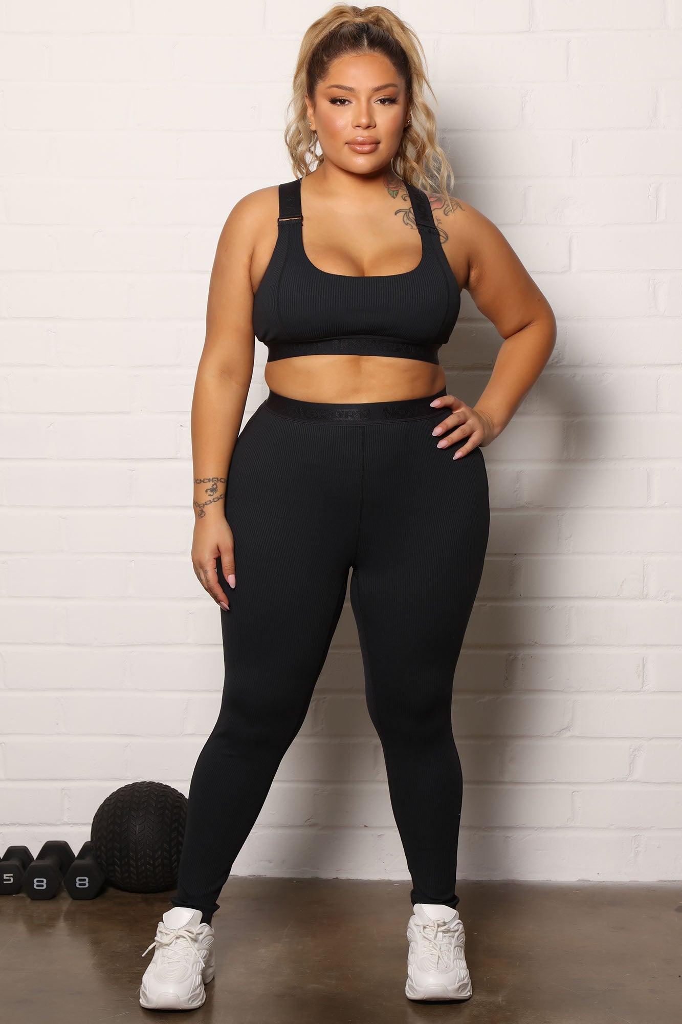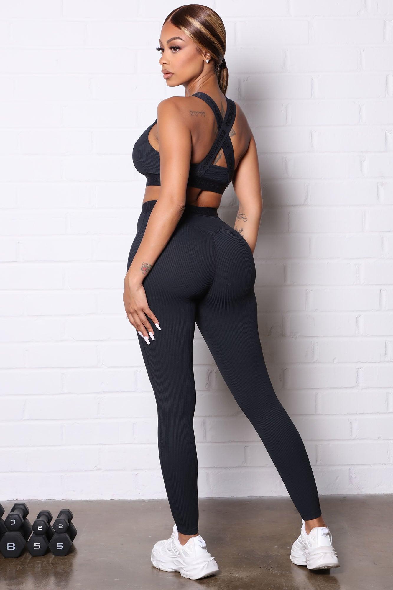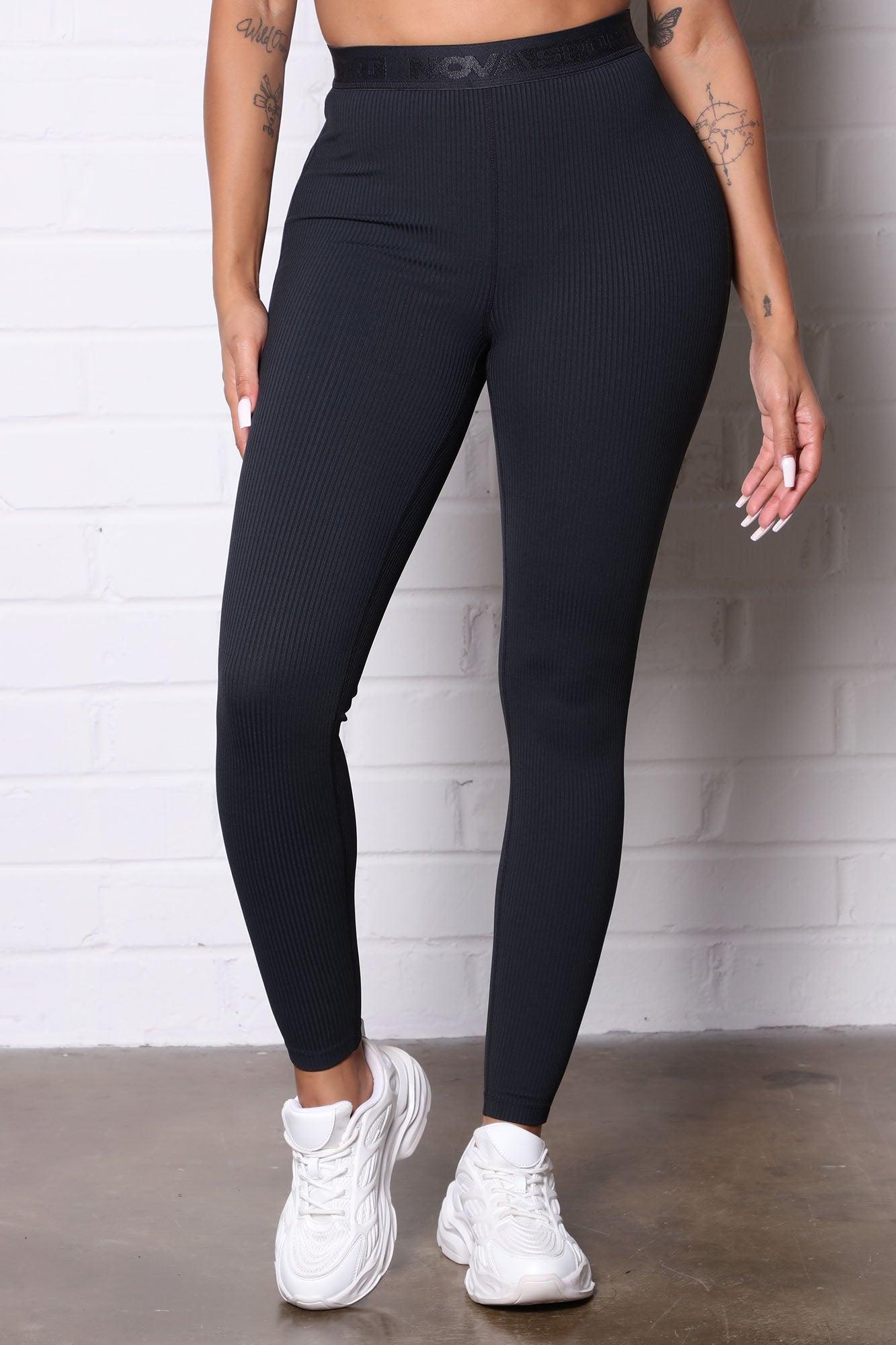 Available In Black And Grey. Active Leggings In Ribbed Fabric Stretchy With Great Recovery Lightweight High Waist Full Length Elastic Branding Strap Detail Sweat Wicking Butt Outline Stitch Detail 92% Nylon 8% Spandex Exclusive of Trim Imported