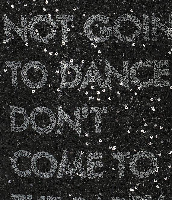 From Never Fully Dressed, this dress features: Mixed media fabrication Crew neckline Short sleeves Pull over construction T-shirt dress silhouette Sequin graphic detail: "If you're not going to dance don't come to the party" Lace skirt Maxi length Approx. 54.33" length Top: cotton/elastane Bottom: polyamide/elastane Sequin base: polyester/elastane Sequin: polyethylene Hand wash Imported.