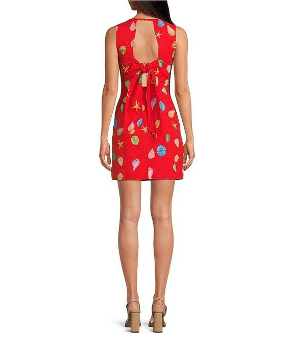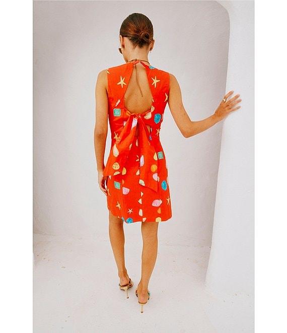 From Never Fully Dressed, this dress features:Multicolor shell print Square necklineSleevelessTie back detailing Sheath silhouetteStraight hem Approx. 34" length Cotton/linenMachine washable Imported.