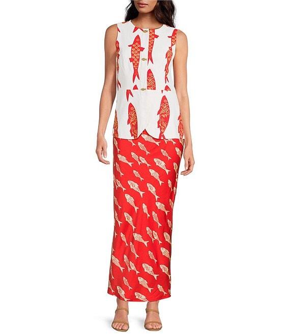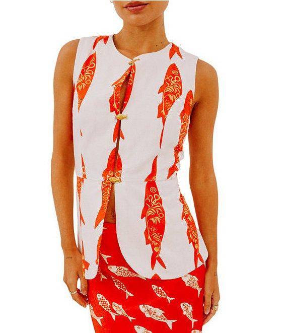 Never Fully Dressed Marina Fish Print Crew Neck Sleeveless Coordinating Waistcoat