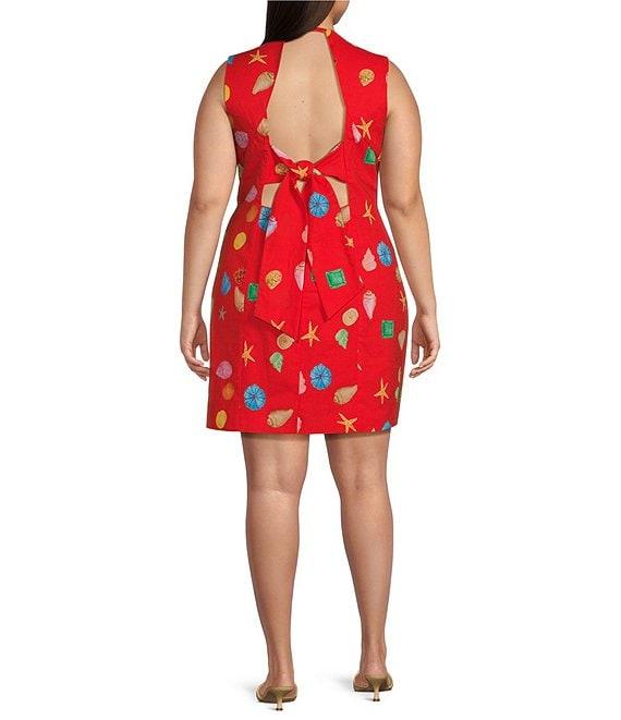From Never Fully Dressed Plus, this dress features: Multicolor shell print Square neckline Sleeveless Tie back detailing Sheath silhouette Straight hem Approx. 34" length Cotton/linen Machine washable Imported.