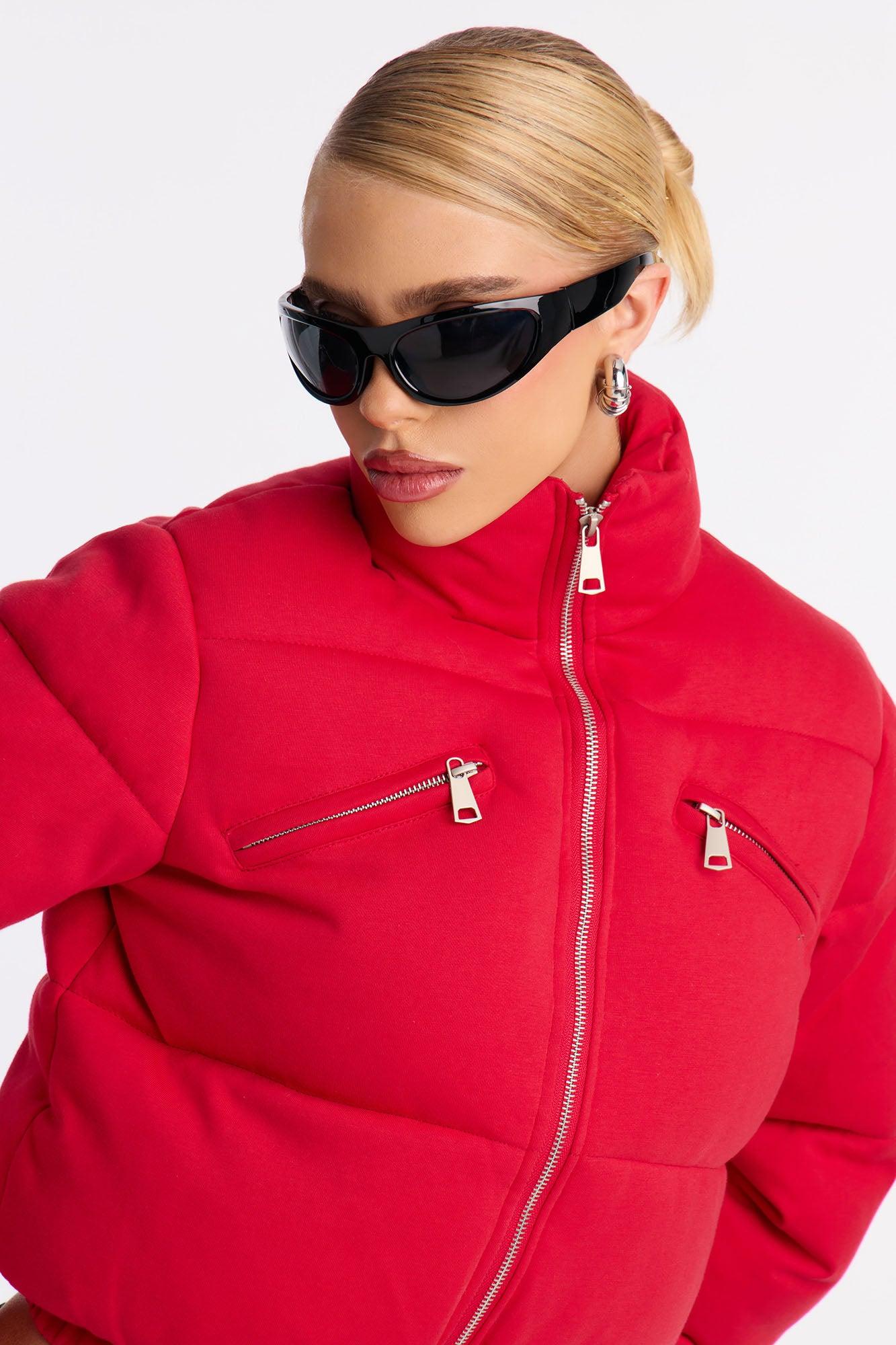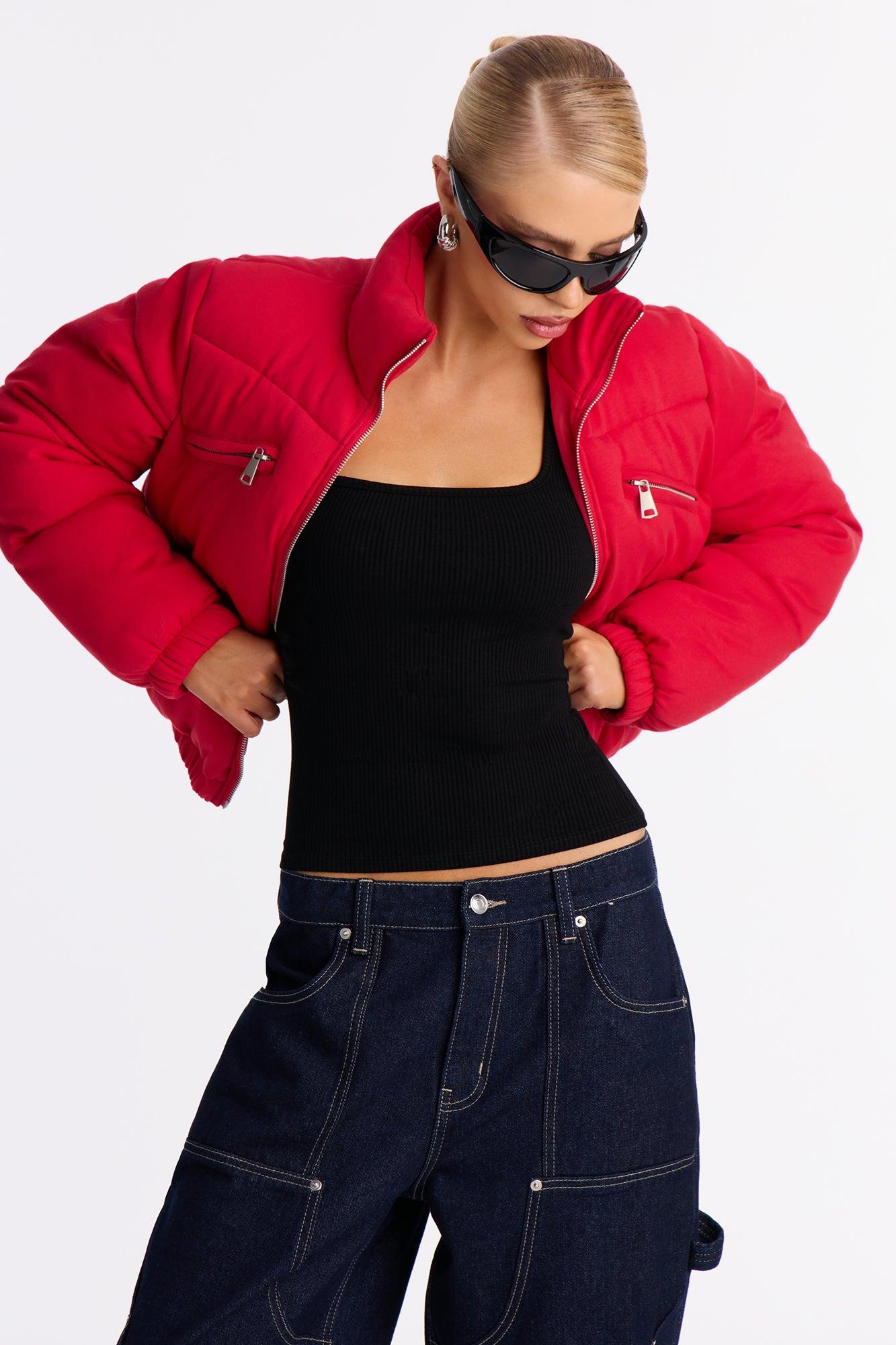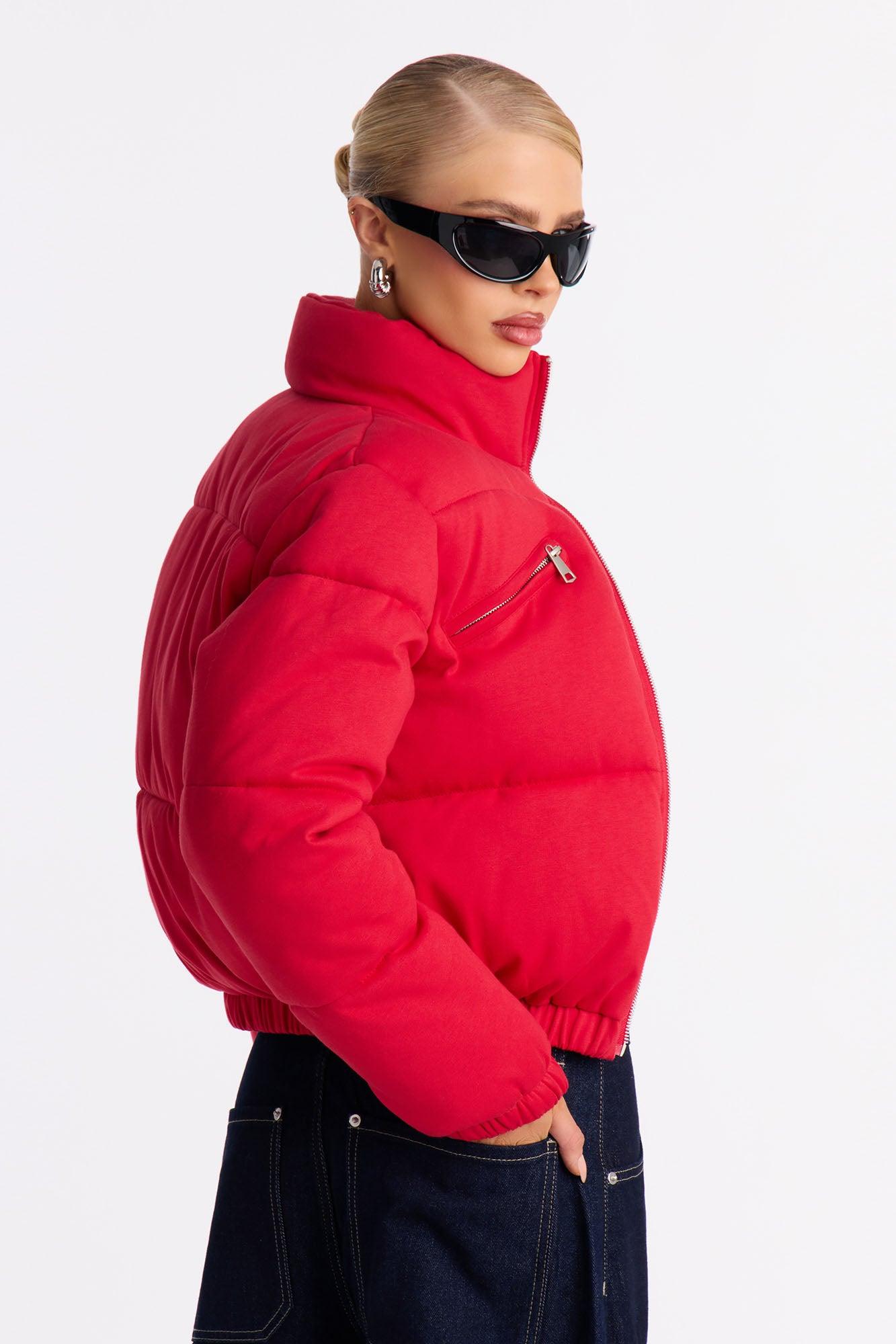 Available In Black, Light Grey And Red. Puffer Jacket Stand Collar Long Sleeves Zipper Closure Zipper Detail Elastic Hem Fully Lined Cropped Self: 100% Cotton Lining: 100% Polyester Imported California Proposition 65WARNING: Cancer and Reproductive Harm - www.P65Warnings.ca.gov.