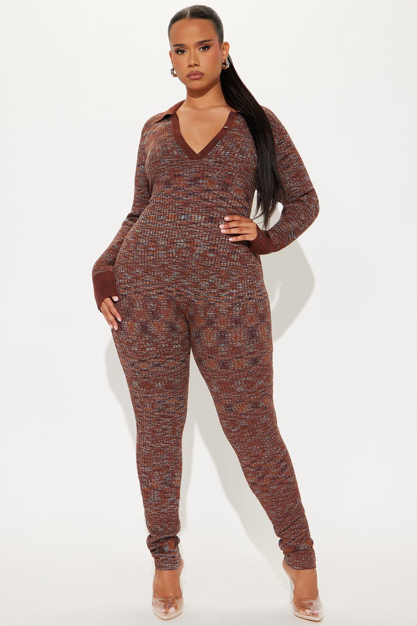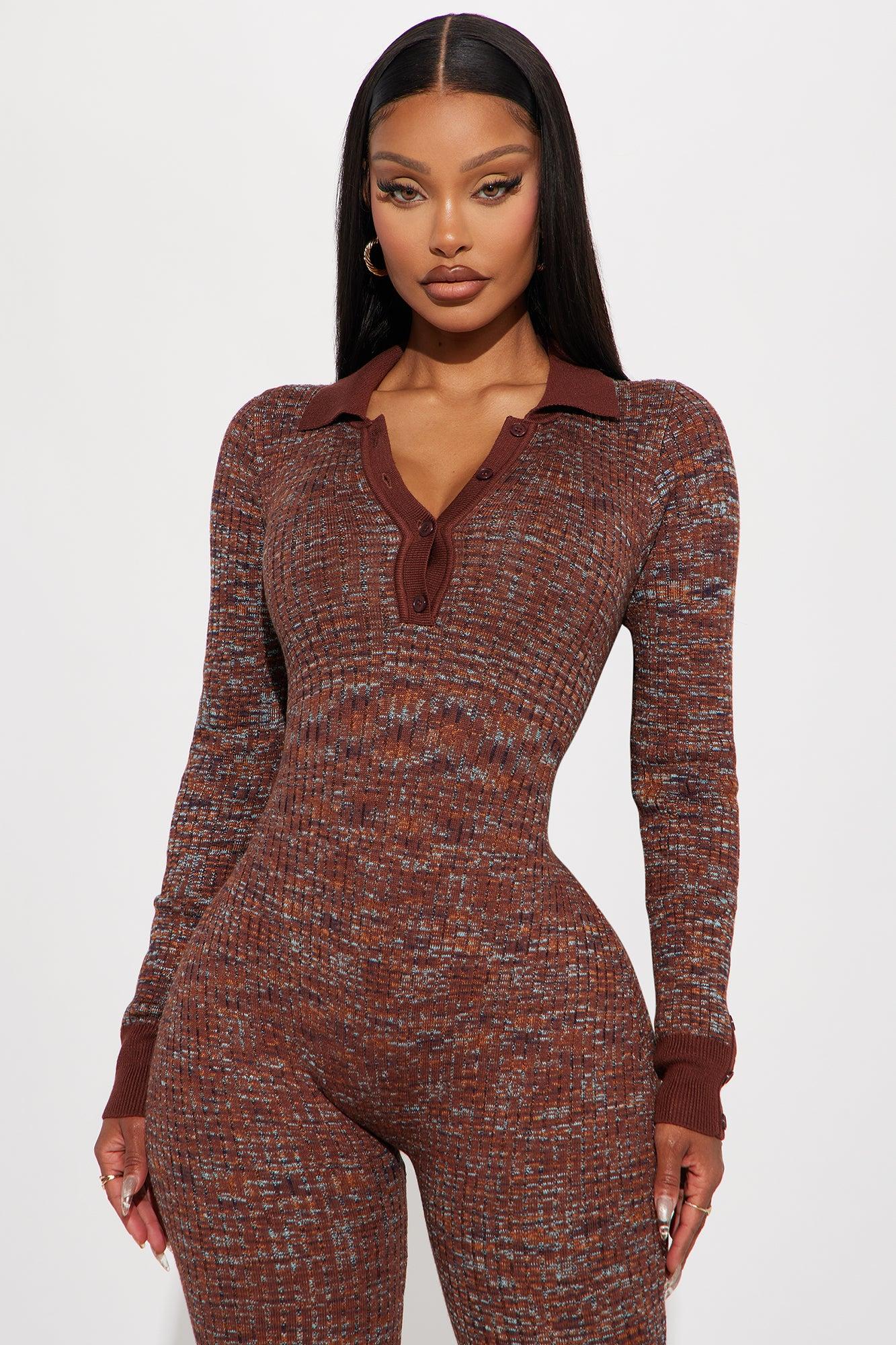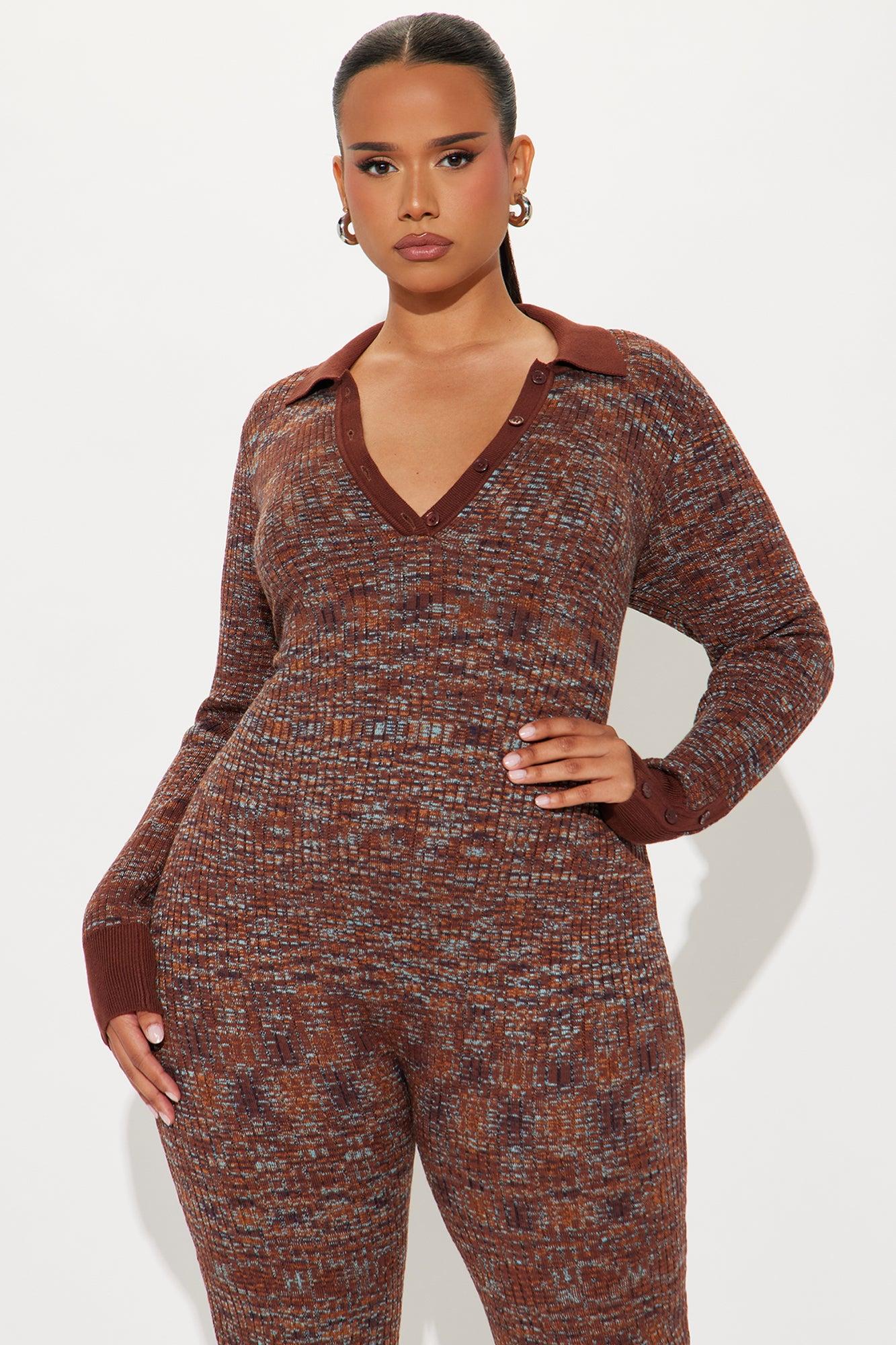 Never Lose Me Sweater Jumpsuit - Brown/combo Female