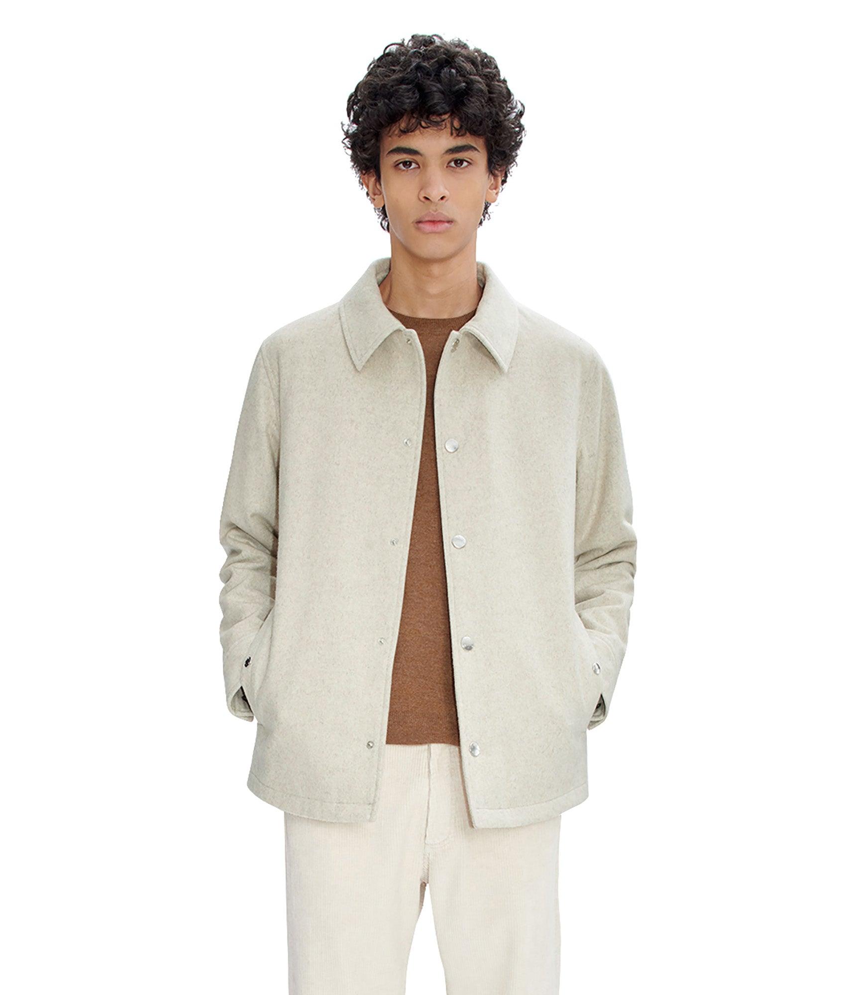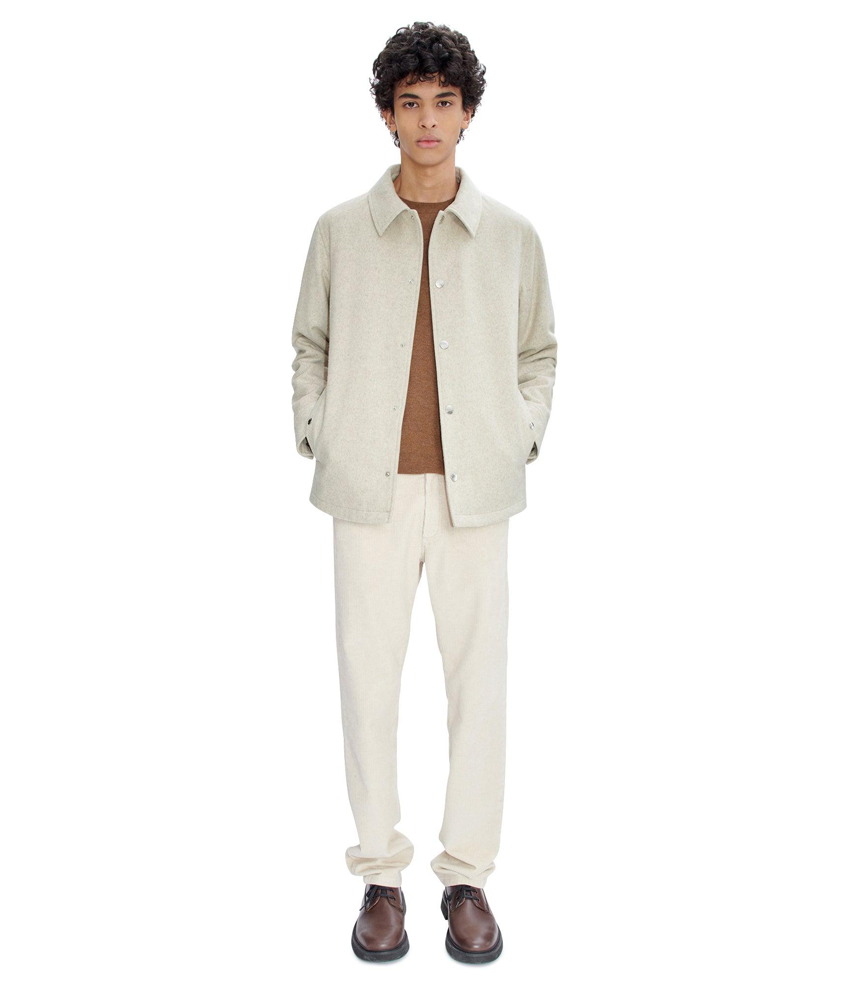 -Unisex model.-Compact, dense material.-Straight cut.-Classic length.-Classic collar.-Buttoned side pockets.-Snap closure.