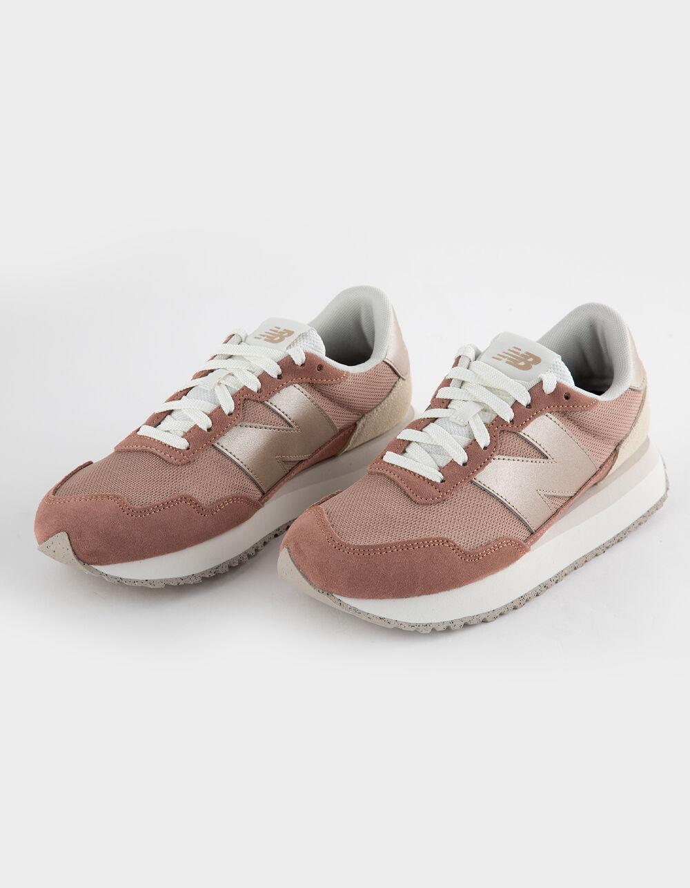 New Balance 237 Shoes. The running shoes of the 1970s might best be described as deceptively simple. While lacking the visible technology and aggressive design of later years, the innovations of the ‘70s would lay the foundation for modern performance. The 237 is a contemporary reinterpretation of ‘70s running heritage that melds a range of heritage design inspirations into one deceptively simple, exceptionally versatile, contemporary silhouette. An EVA midsole, herringbone outsole and streamlined upper offer a classic launching point for modern flourishes like oversized N branding, extended midsole length, and gator inspired foxing and mudguard. You could call the cohesion of the 237’s familiar feel and exaggerated updates the simplest way to make a statement. Unbacked suede and mesh upper. EVA midsole. Oversized N logo. Large scale ripple outsole with text branding. Asymmetric rubber tip wrap. Exposed foam tongue. Angled ‘New Balance’ text at heel tab. Imported.