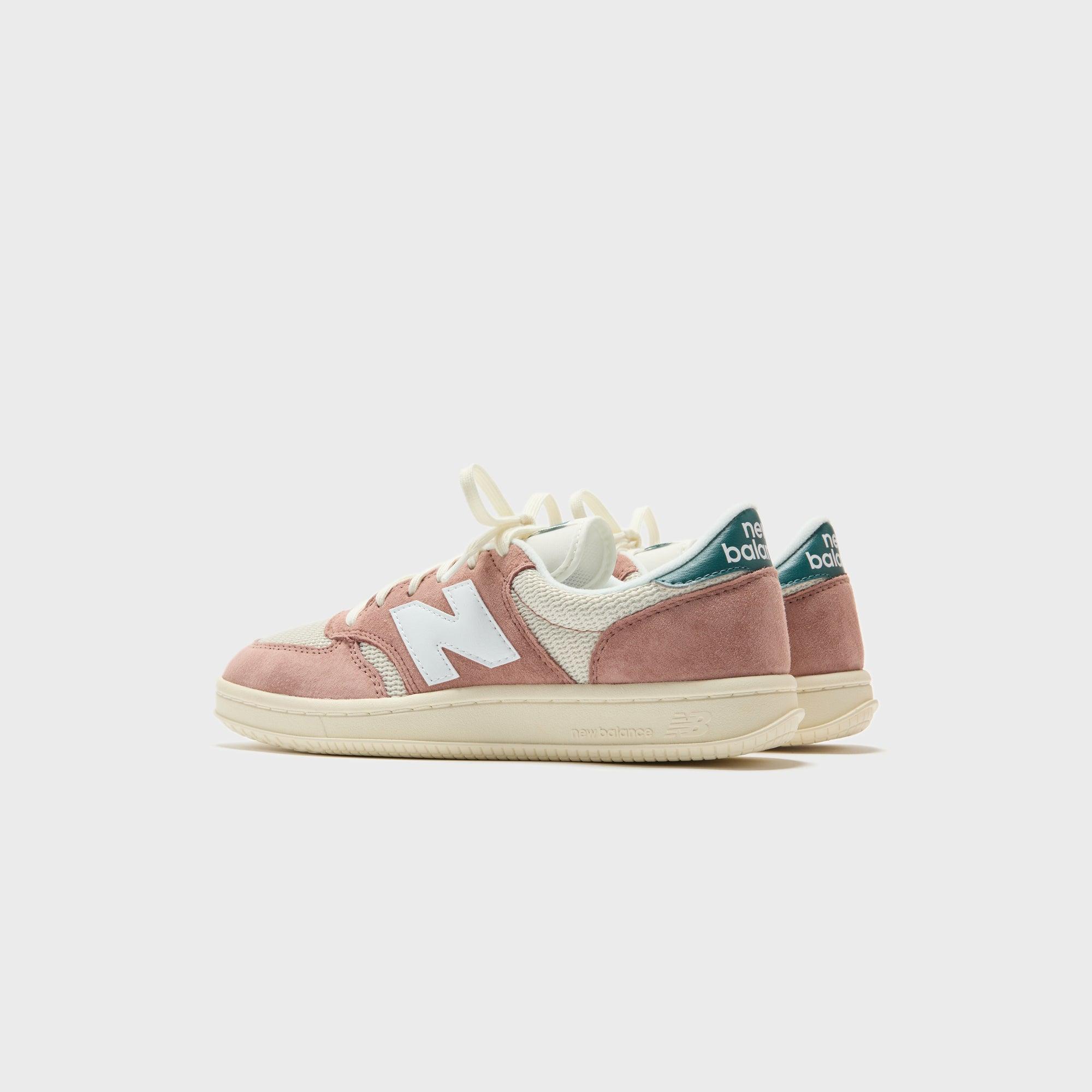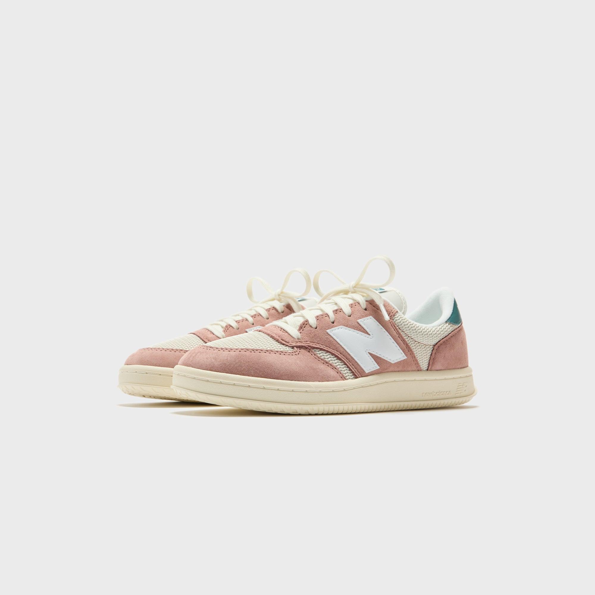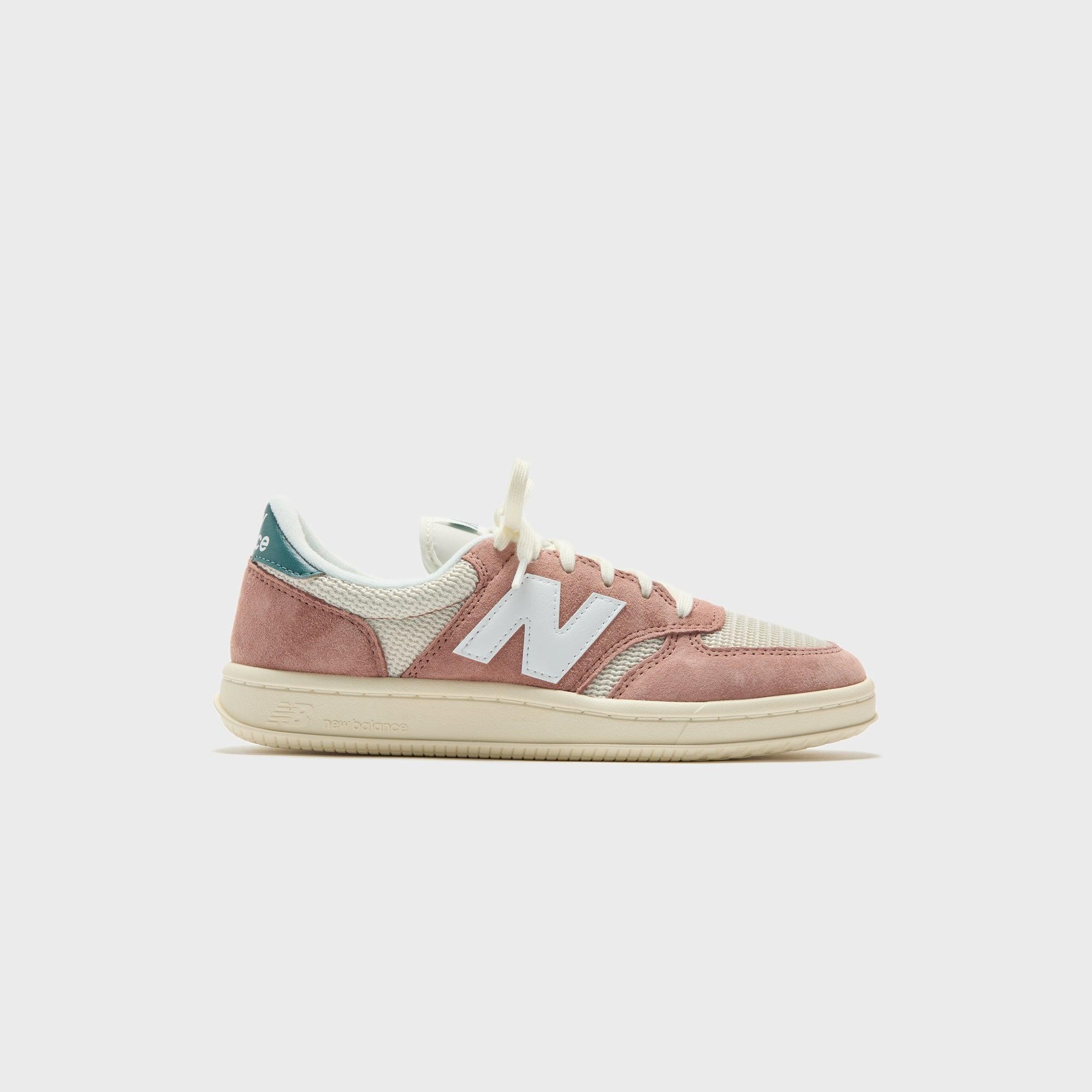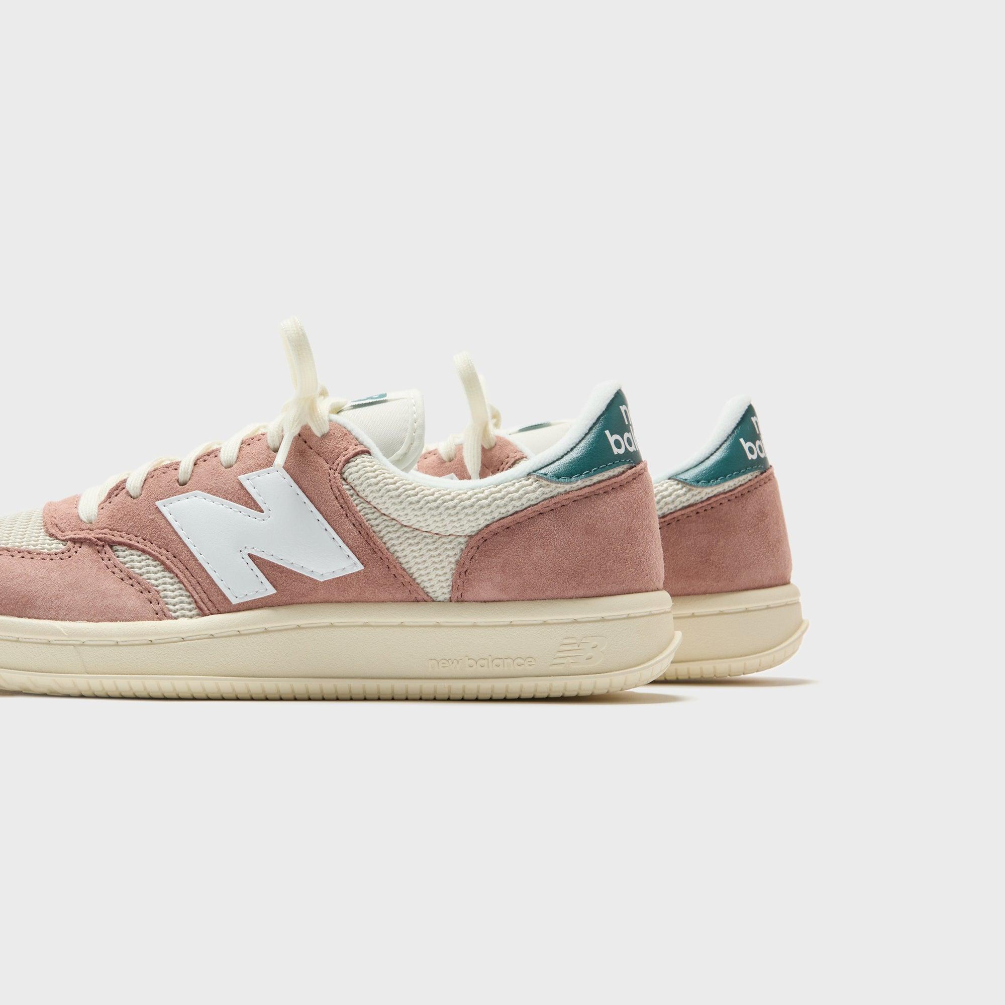 T500 silhouette Mesh upper Suede overlays Padded collar Perforated toe box Detail stitching NB logo patch on tongue N logo patch on side panel Embossed New Balance branding on heel counter Flat-woven laces Polyurethane midsole Rubber outsole Style: nbct500gb Color: Landslide / Linen / New Spruce Material: Mesh / Suede