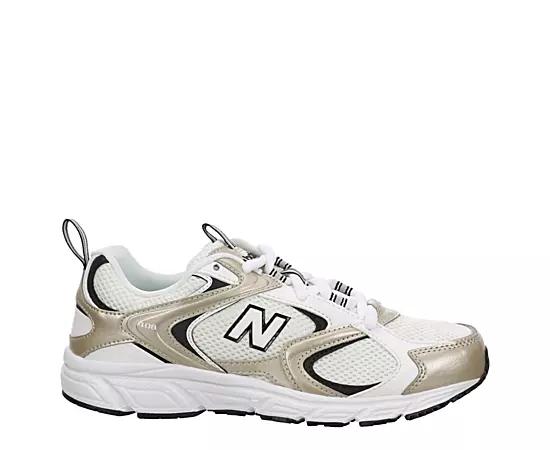 New Balance 408 Women's Sneaker - Off White/GoldKeep your sporty style current with a nod to the past in 408 Sneaker from New Balance. Featuring a breathable mesh & faux leather upper with dual pull tabs for easy entry, this well-built Shoe has retro vibes and clean lines. The C-CAP midsole offers flexible cushioning, while the outsole adds the bounce to your steps. Mesh/synthetic upper Lace-up closure Padded collar /tongueC-CAP midsole Rubber outsole