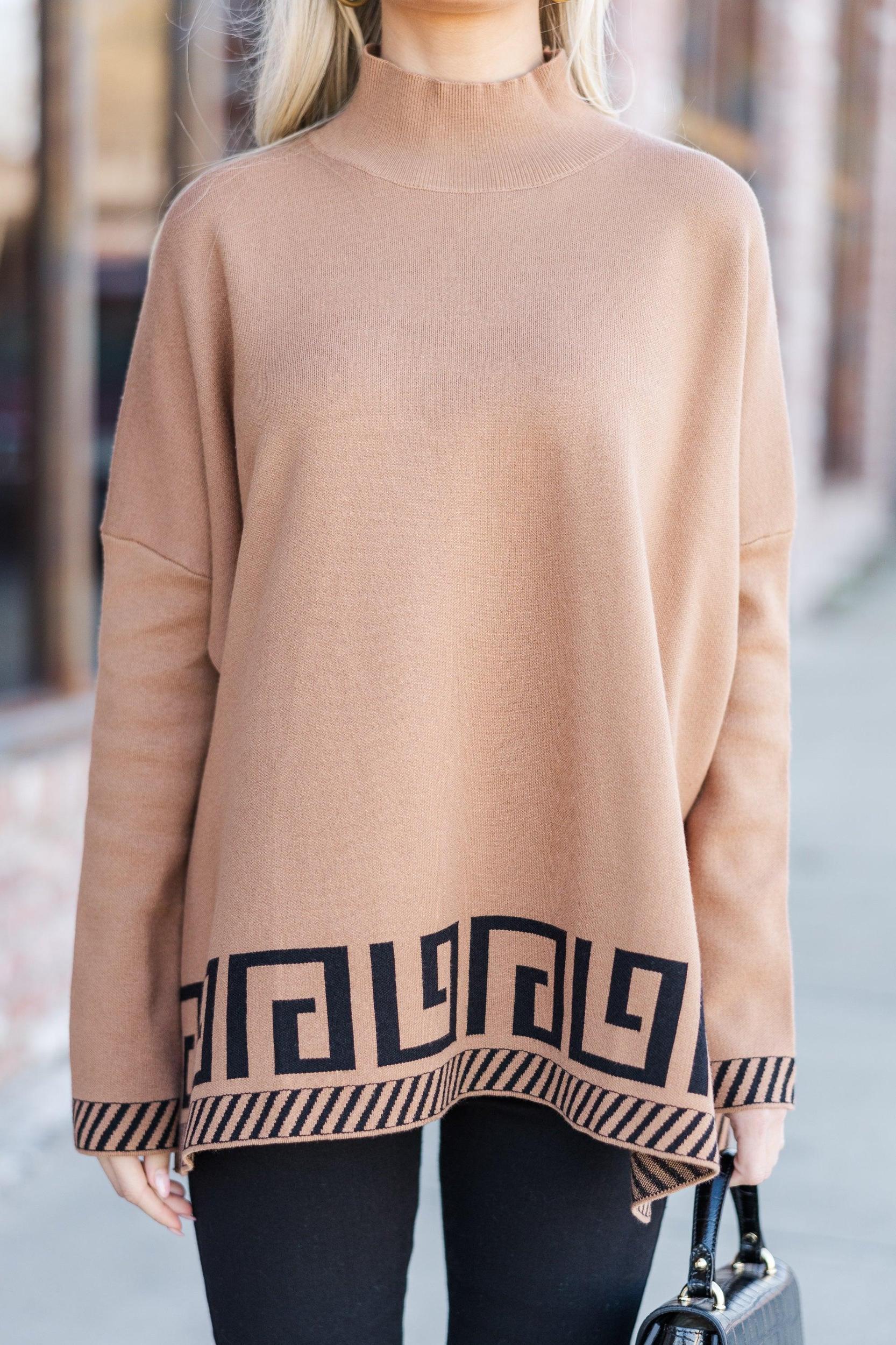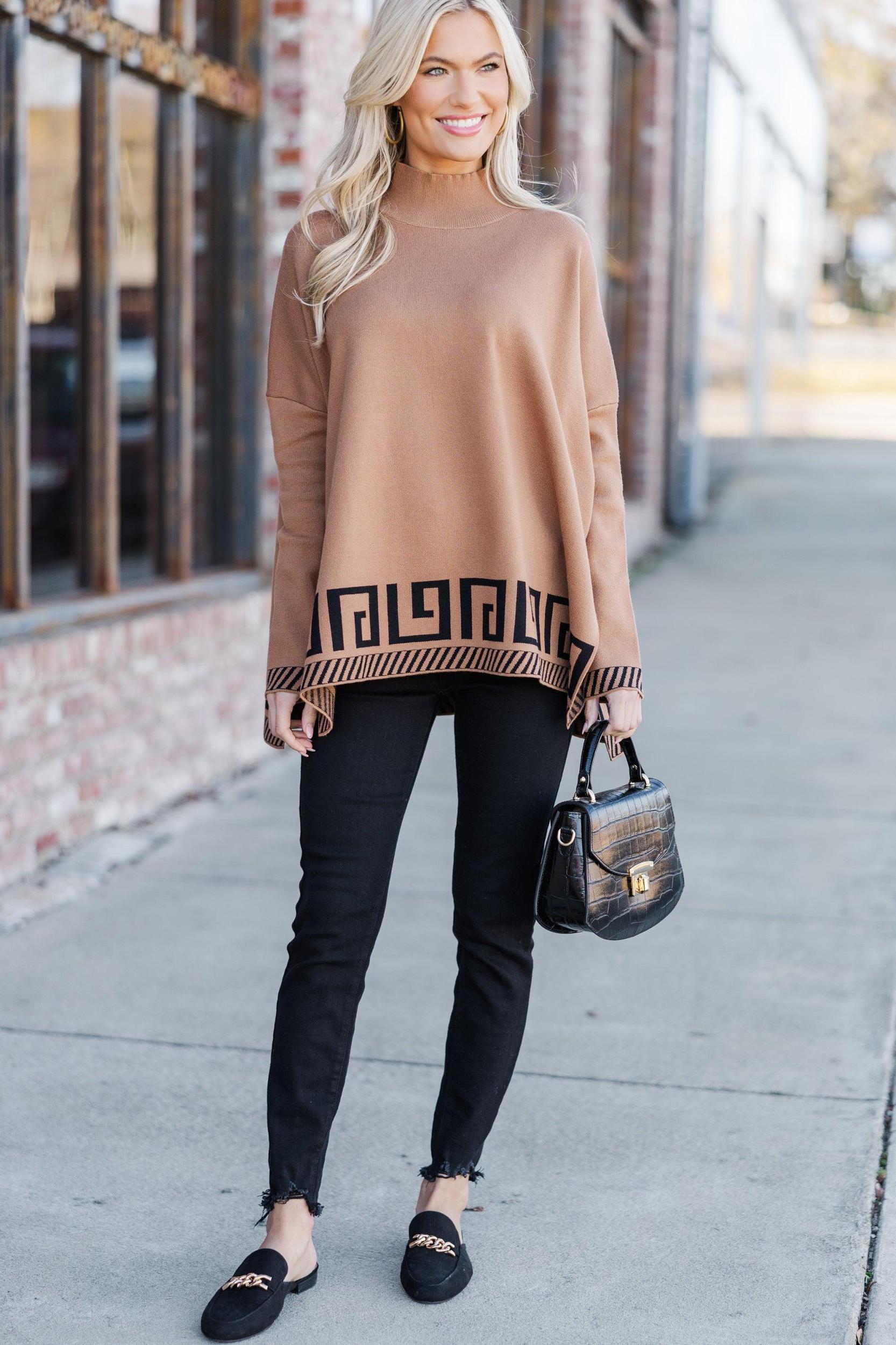 This neutral sweater tunic is just so chic! It's perfect for created a very elevated look without sacrificing comfort! That geometric pattern along the hemline really adds the perfect amount of detail to this cozy tunic. Mock neckline Long sleeves Geometric pattern trim Generous stretch Baileigh is wearing the small.