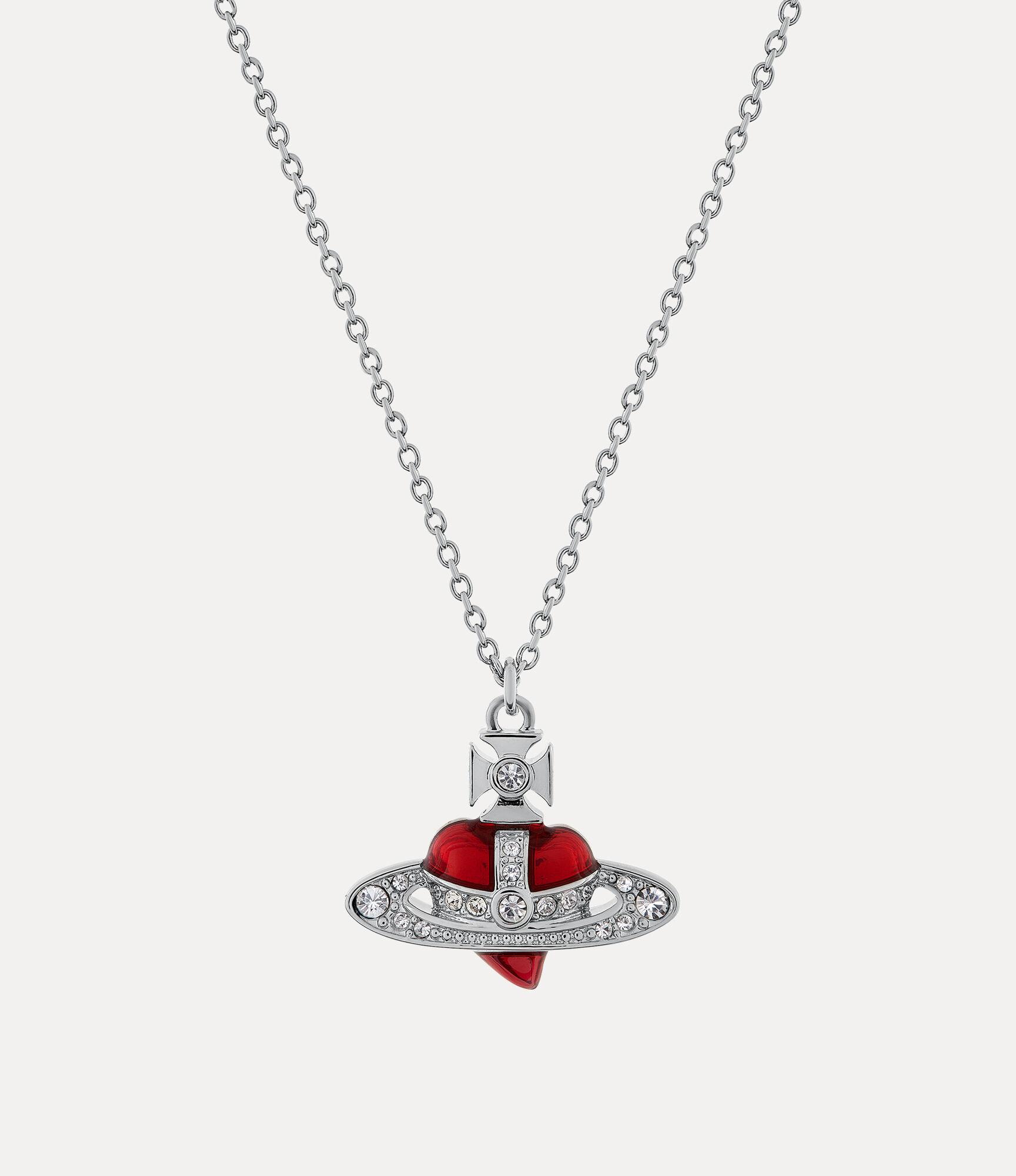 The heart shape has become a signature style of the house, synonymous with Vivienne's affection for both humanity and the planet. Our New Diamante Heart Pendant necklace revives our iconic asymmetric heart silhouette, outlined with white-coloured crystals and finished with red enamel in the centre of the design.