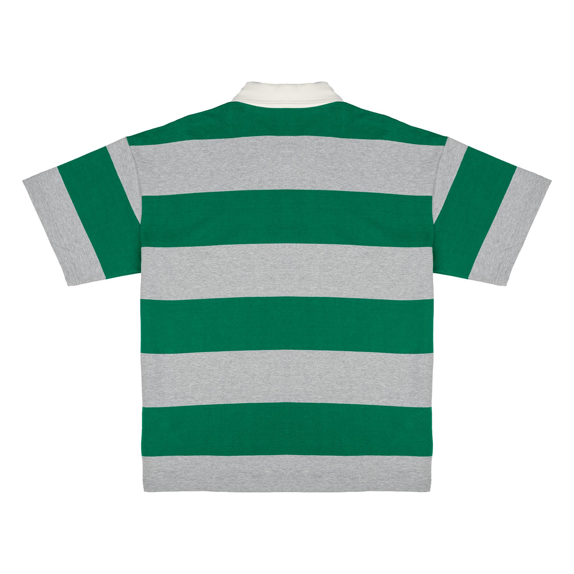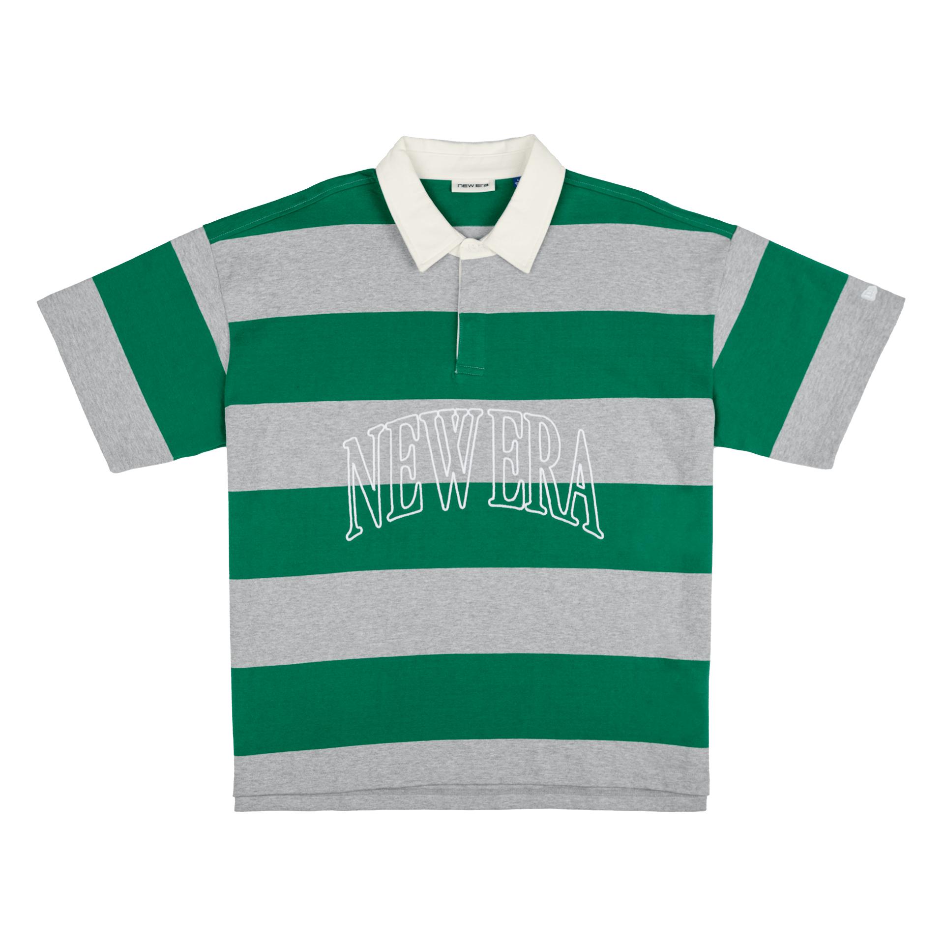 The New Era Branded Embroidered Yarn Dye Kelly Green Rugby Shirt features: Three-button closure Chainstitch embroidered New Era wordmark at the chest New Era Flag patch at left sleeve Side slit vents Woven collar Knit yarn dyed body 400 GSM Rugby Weight Relaxed fit Color: Kelly Green Fabrication: 50% Recycled Cotton, 50% Organic Cotton