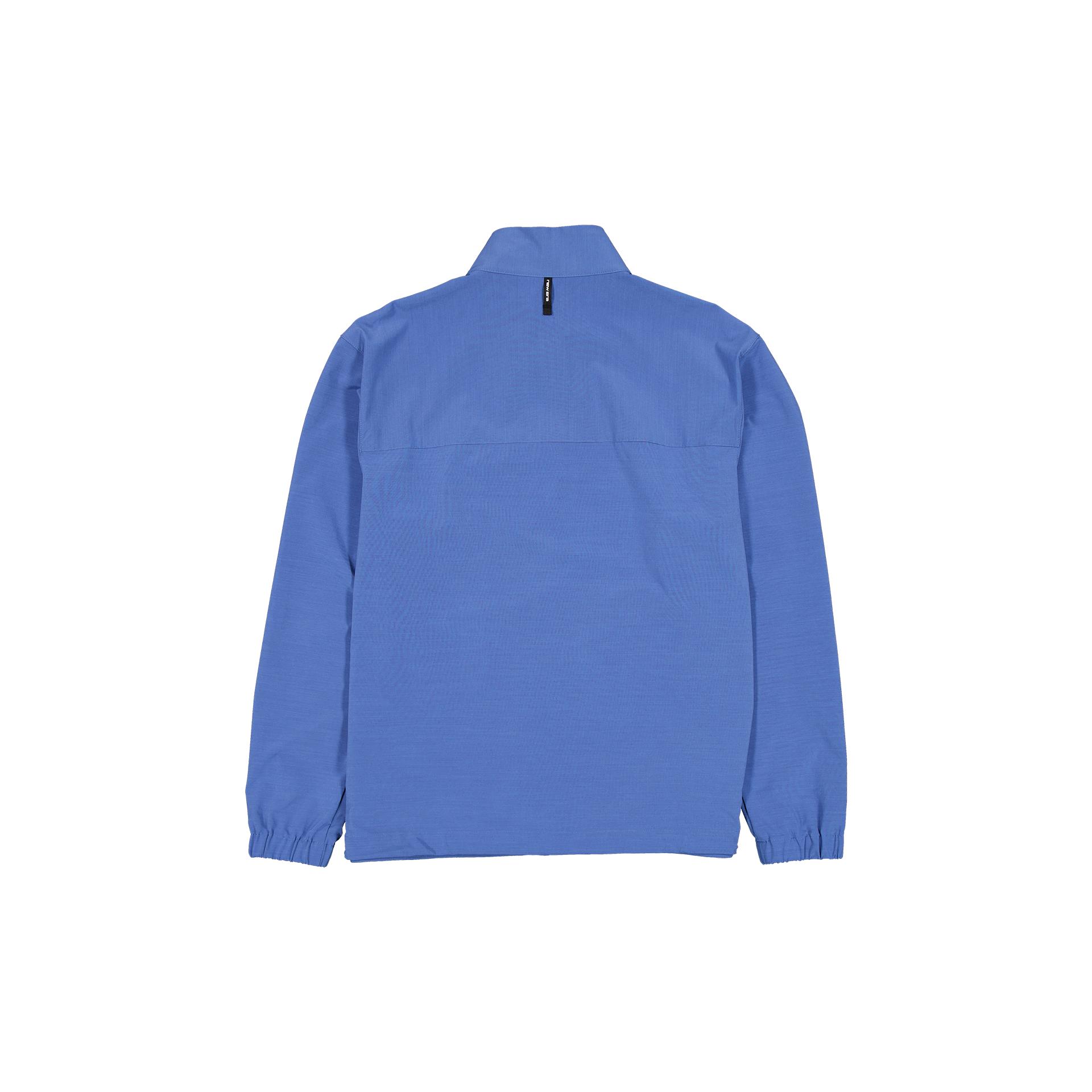 The New Era Branded Rhythm Shell Indigo Jacket features: New Era reflective heat transfer logo at front left Front zipper with zipper guard Front patch pockets with zipper entry Zip welt pocket at left chest Adjustable bungee drawcords at hem Elasticated cuffs Standard fit Color: Indigo Fabrication: 49% Polyester, 38% Recycled Polyester, 13% Spandex