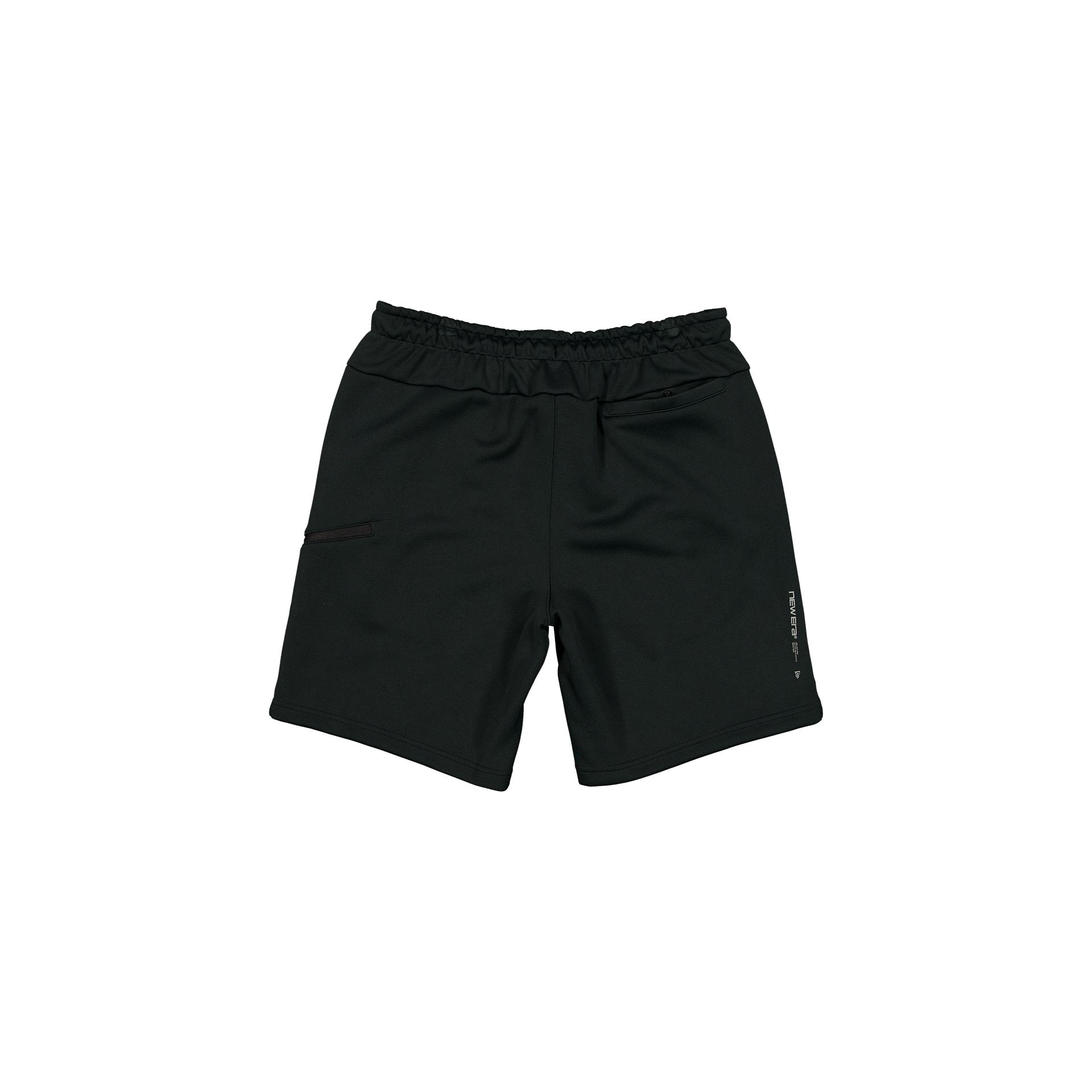 The New Era Branded Train Black Shorts feature: Drawcord at Waistband Technical Fleece Composition Reflective Flag Logo at Left Pocket Opening Color: Black Fabrication: 100% Polyester