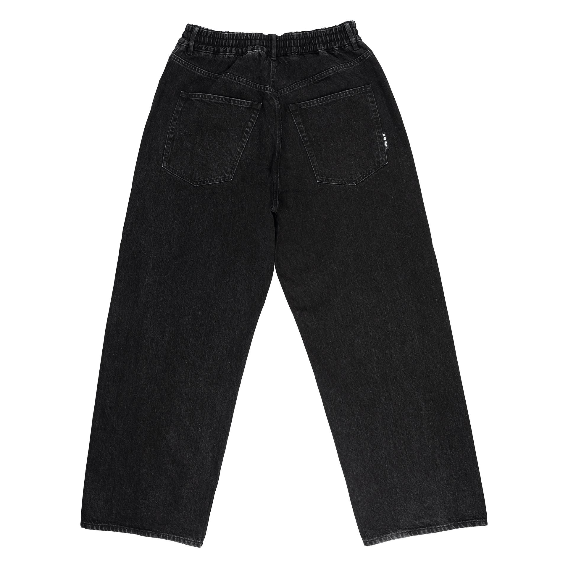 The New Era Branded Warehouse Black Jeans features: Elasticated waistband with drawstring Functional Fly front closure Five pockets Dropped crotch Forward side seam 31” Inseam Relaxed Fit Color: Black Fabrication: 100% Cotton