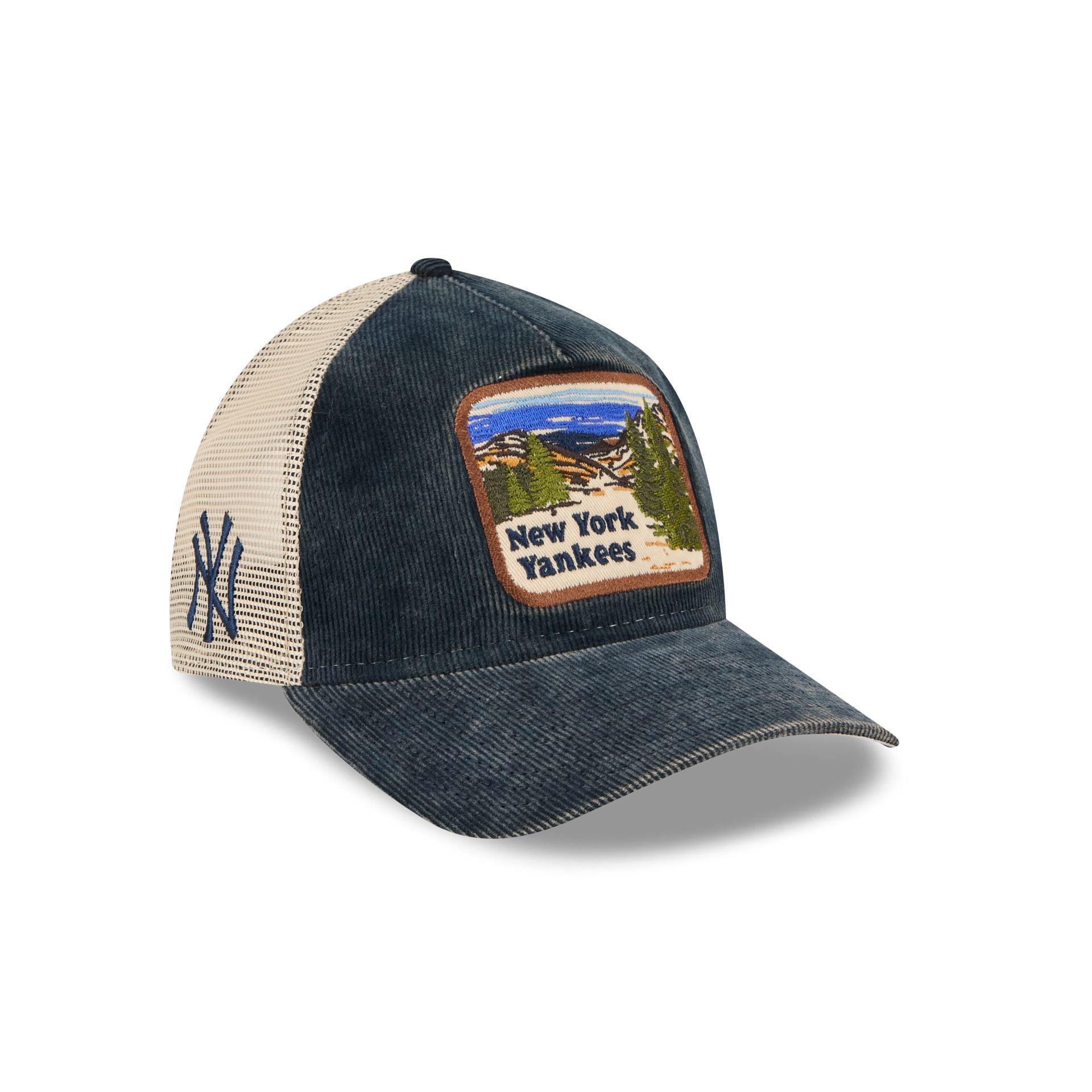 The Anaheim Ducks Vintage Landscape 9TWENTY A-Frame Trucker features an embroidered Ducks Vintage Landscape patch at the front panels with a team logo at the right-wear side. Additional details include an adjustable snapback closure at the rear and a gray undervisor.