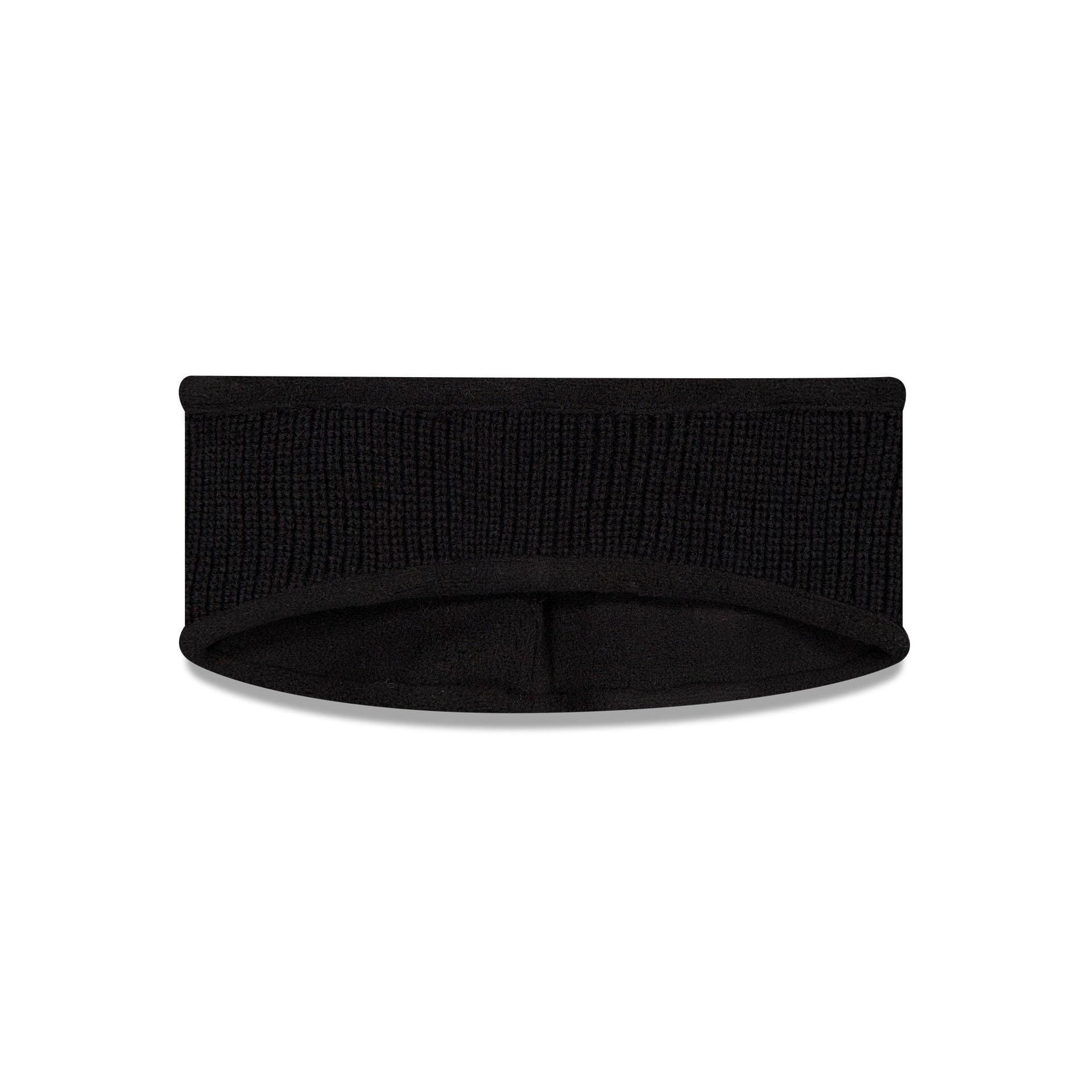 The New Era Cap Black Knit Ear Warmer features an embroidered New Era Flag at the left-wear side with a reflective woven New Era box logo at the rear. Additional details include a ribbed knit fabrication at the exterior and a soft fleece fabrication at the interior.