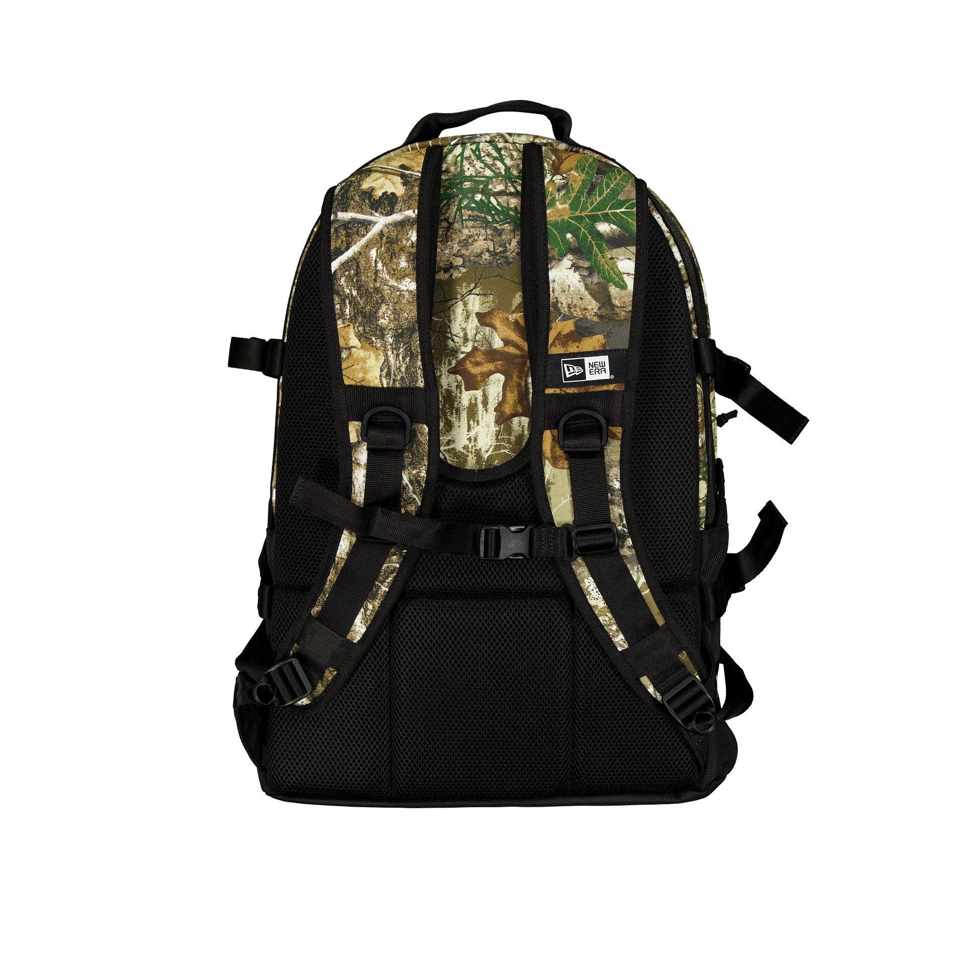 The New Era Cap Realtree Carrier Pack features a woven New Era patch at the front and a 3-layer main storage compartment with subdivided inner pockets. Additional details include an embroidered New Era Flag at the right-side water bottle storage pocket, an external zip pocket, and adjustable straps for skateboards or other accessories.Fabric: 100% PolyesterVolume: 35L Region: Japan