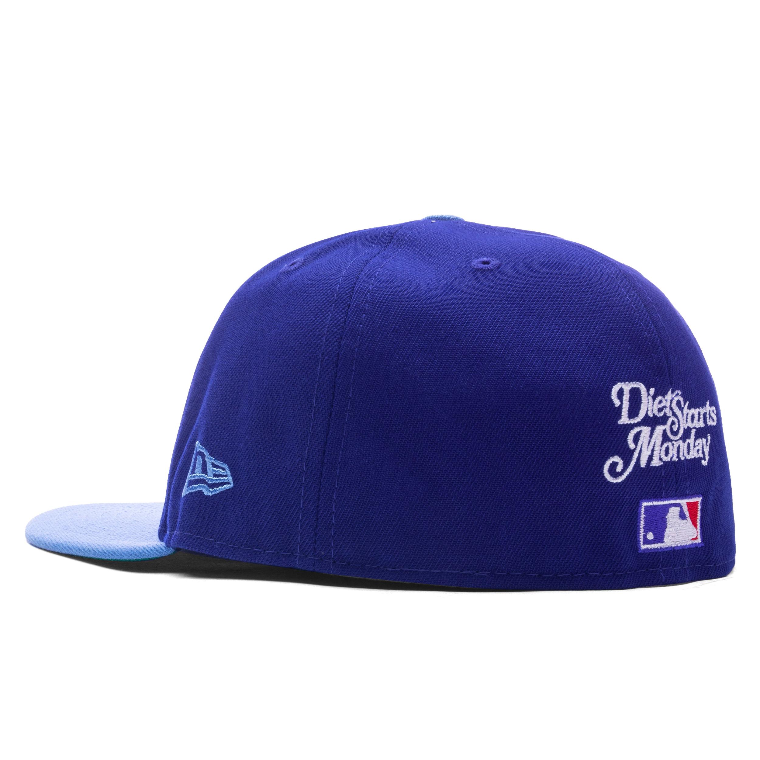 The Texas Rangers New Era x Diet Starts Monday MLB 59Fifty Diet Cap is crafted from pure polyester. This cap includes an embroidered front panel and side hit, and DSM embroidery on the back, adding a signature detail. 100% Polyester Embroidered branding Fitted cap Flat brim Style No: 60598377