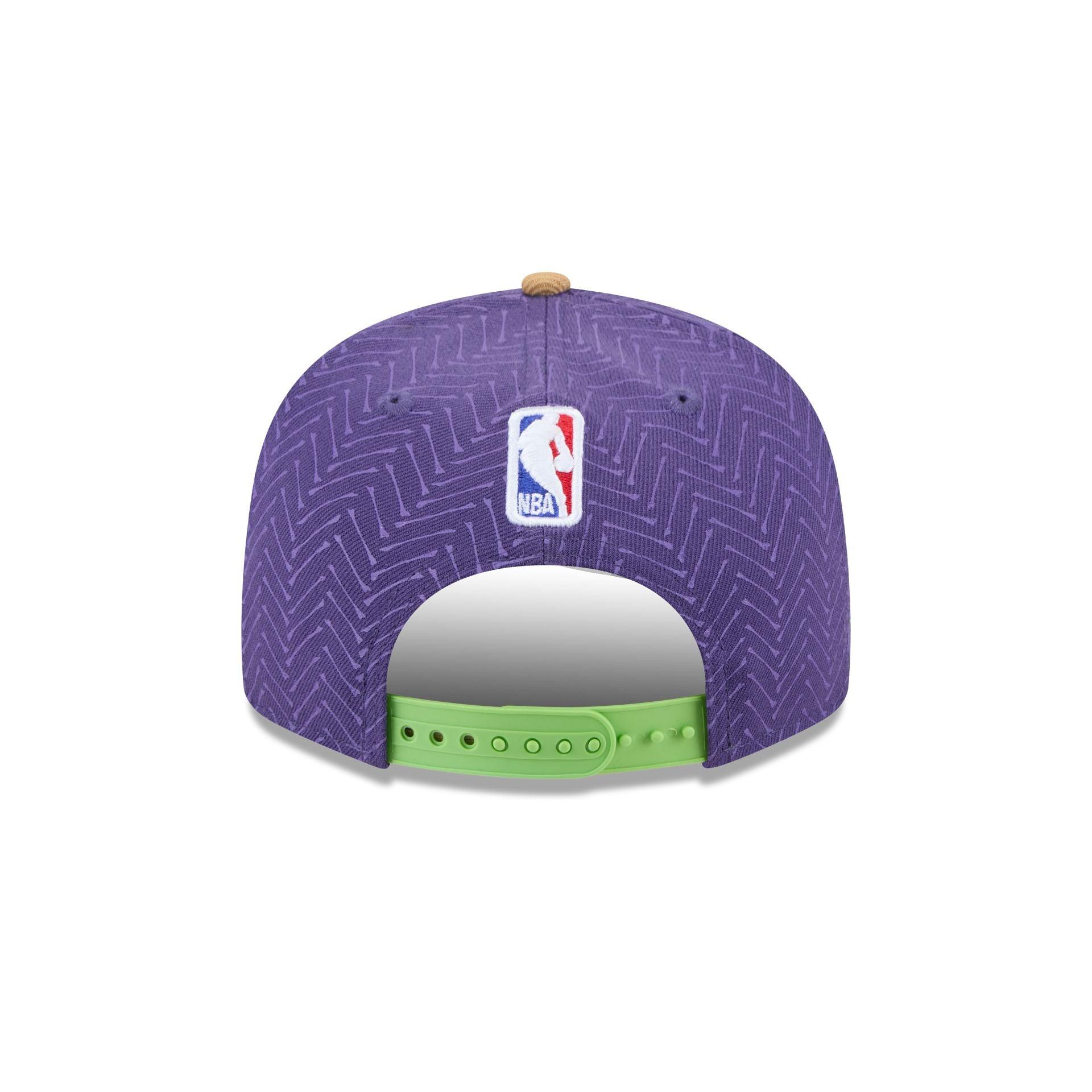 The New Orleans Pelicans 2024 City Edition 9FIFTY Snapback features an embroidered Pelicans NOLA wordmark at the front panels with an NBA Logoman above a snapback closure at the rear. Additional details include a team logo at the right-wear side and a gray undervisor.