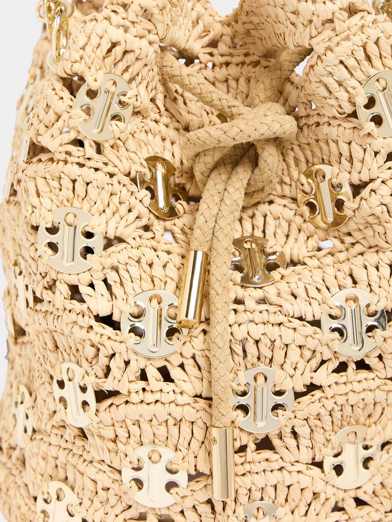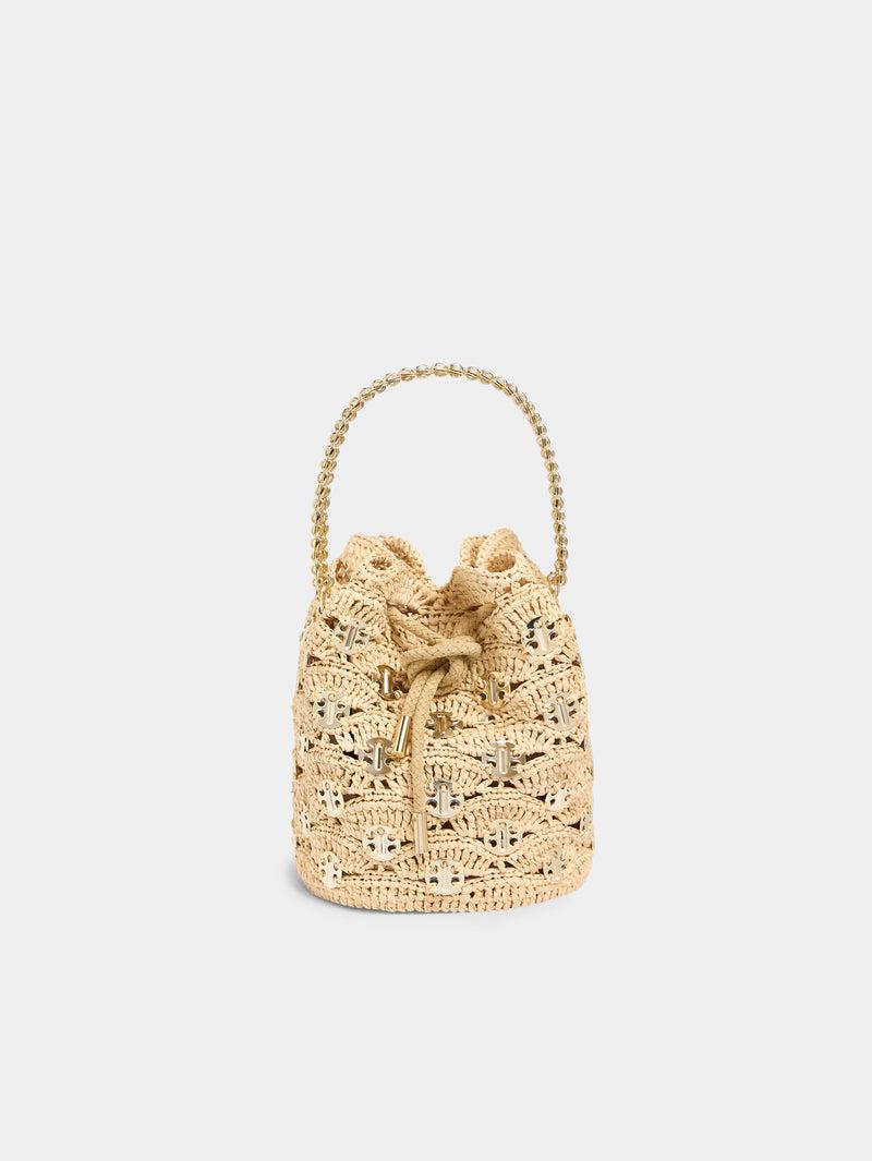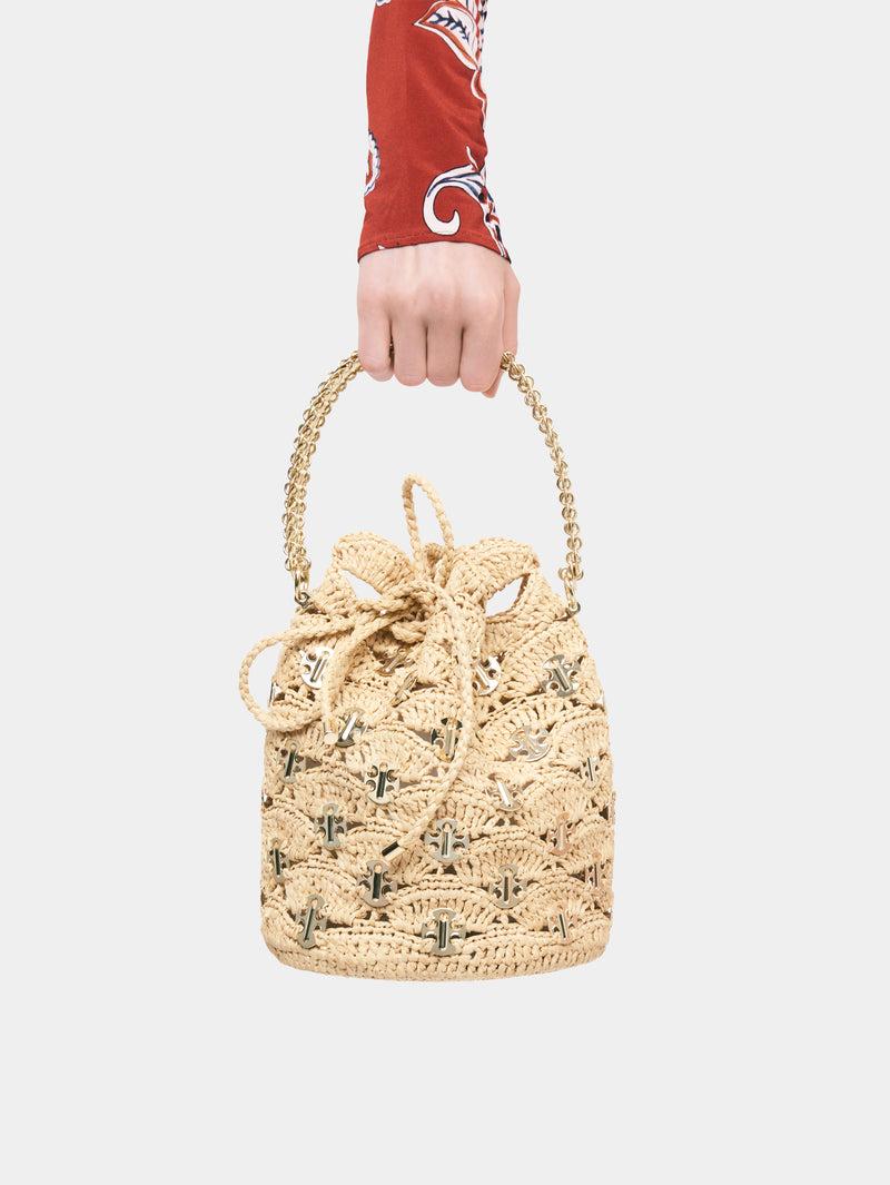 New Raphia wave bucket bag with signature 1969 discs