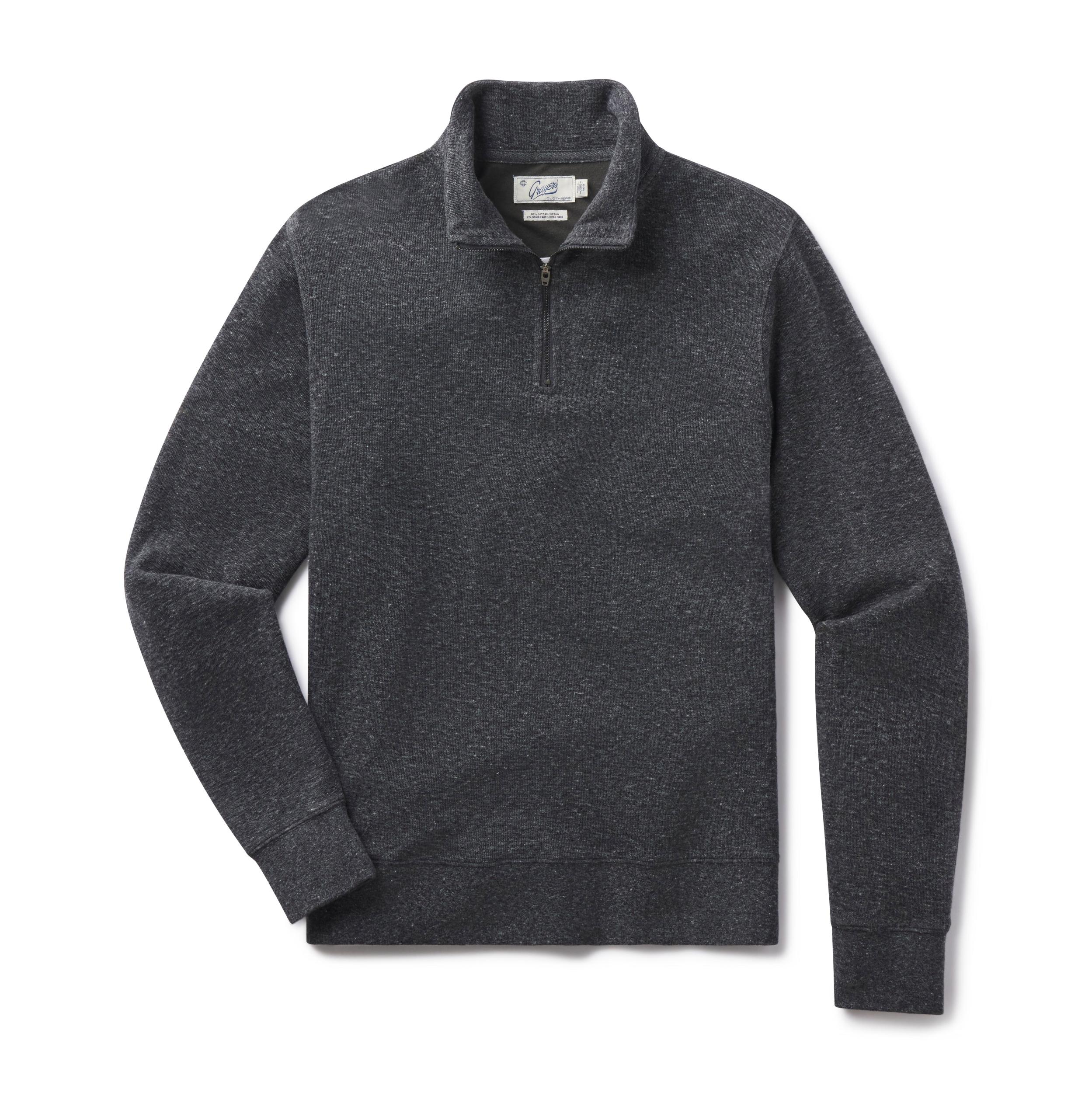 This 1/4 zip mock neck pullover features a double-knit design, knit with premium heather yarns, with a textured thermal cloth on the outside and a soft jersey layer on the inside. The loose knit texture of the double-knit offers breathability and built-in stretch. Wear it as an updated sweatshirt for a casual stroll or under a blazer for a night about town. The Model is also wearing: Model: ----Details---- Double-knit textured thermal outside with jersey inside Garment washed 1/4 zip mock neck Ribb cuffs & hem Double needle stitching YKK Zipper Imported ----Materials---- 98% Cotton 2% Other fibers Knit with premium heather cotton yarns ----Size & Fit---- Measuring Method: All measurements are in inches and based on a flat garment, as shown below. For comparison with one of your existing garments, please lay garment on a flat surface and follow the key measurement points. For chest and neck, if you double the flat measurement, you will get close to the full body measurement. ----Care---- Machine Wash Cold Separately Do Not Soak Before Washing Do Not Bleach Remove Promptly Tumble Dry Low Or Hang Dry In Shaded Area Cool Iron If Necessary