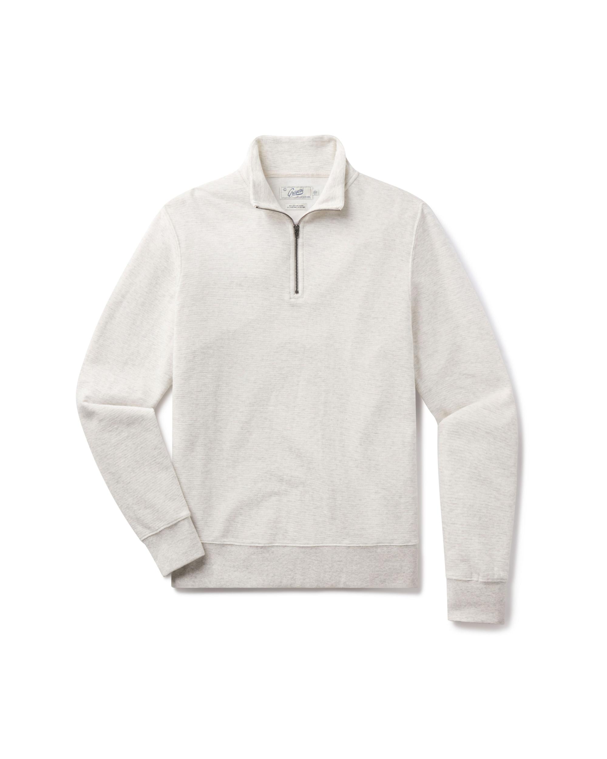 This 1/4 zip mock neck pullover features a double-knit design, knit with premium heather yarns, with a textured thermal cloth on the outside and a soft jersey layer on the inside. The loose knit texture of the double-knit offers breathability and built-in stretch. Wear it as an updated sweatshirt for a casual stroll or under a blazer for a night about town. The Model is also wearing: Model: ----Details---- Double-knit textured thermal outside with jersey inside Garment washed 1/4 zip mock neck Ribb cuffs & hem Double needle stitching YKK Zipper Imported ----Materials---- 98% Cotton 2% Other fibers Knit with premium heather cotton yarns ----Size & Fit---- Measuring Method: All measurements are in inches and based on a flat garment, as shown below. For comparison with one of your existing garments, please lay garment on a flat surface and follow the key measurement points. For chest and neck, if you double the flat measurement, you will get close to the full body measurement. ----Care---- Machine Wash Cold Separately Do Not Soak Before Washing Do Not Bleach Remove Promptly Tumble Dry Low Or Hang Dry In Shaded Area Cool Iron If Necessary