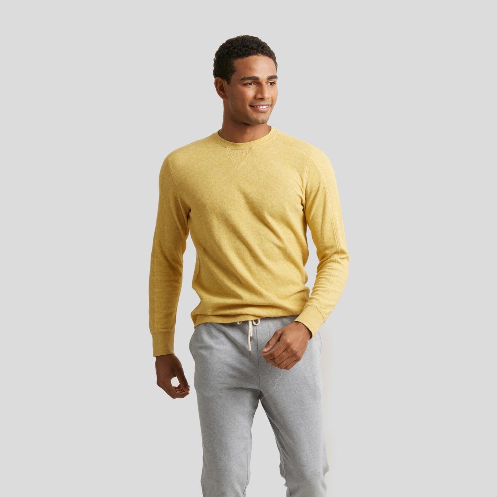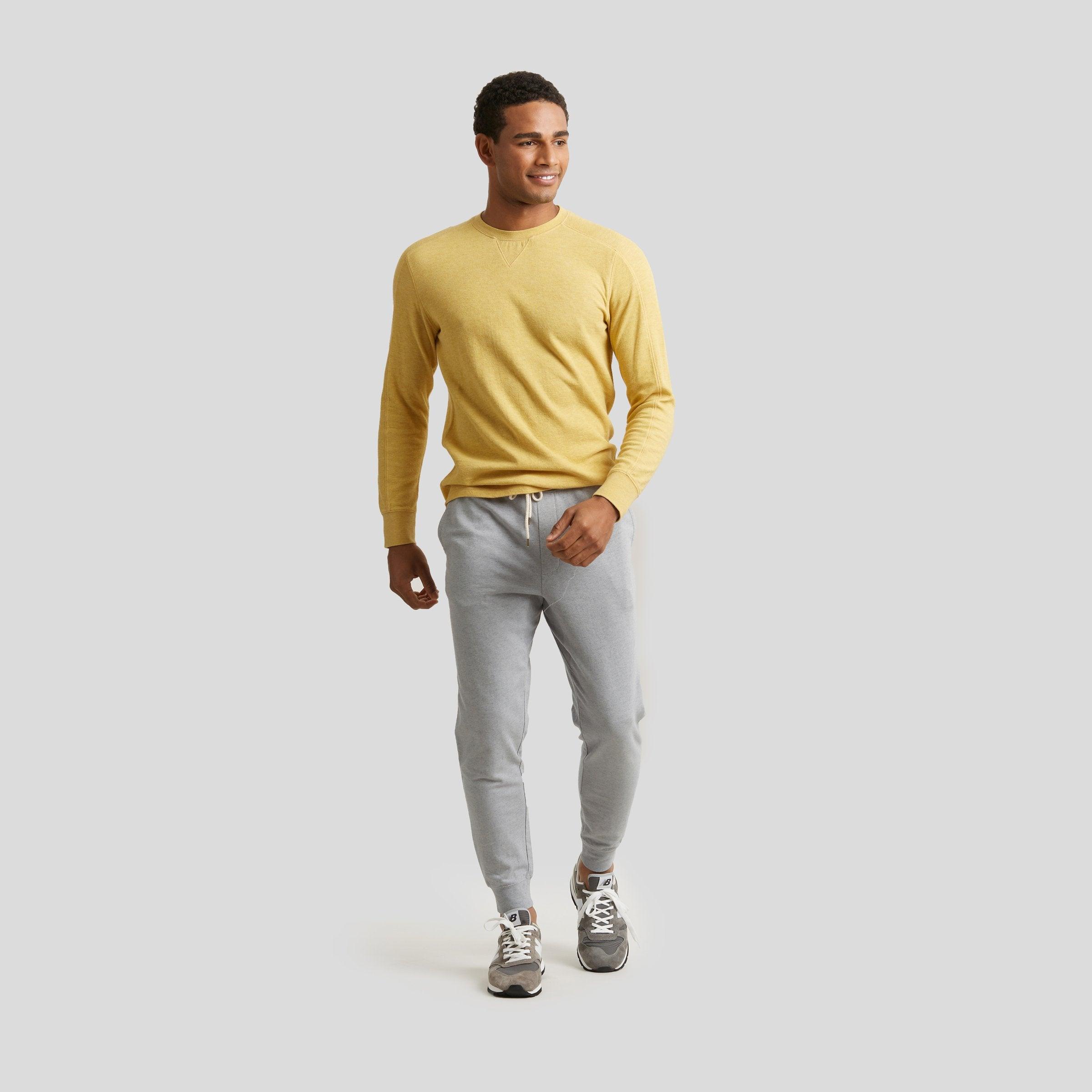 Outside, this masculine essential is a classic thermal—knit from the highest quality premium heather yarns in a two-fold knit fabric. Skinside, it’s soft, stretchy cotton jersey. Wear it as a layered crew, an updated sweatshirt or under a casual blazer. Raglan sleeved for ease of movement Athletic top stitching details Classic V notch detail Clean finished neck opening with herringbone tape Ribbed cuffs and hem 98% Cotton / 2% Nylon Imported The Model is also wearing: Momo Light Weight Terry Joggers - Light Gray.