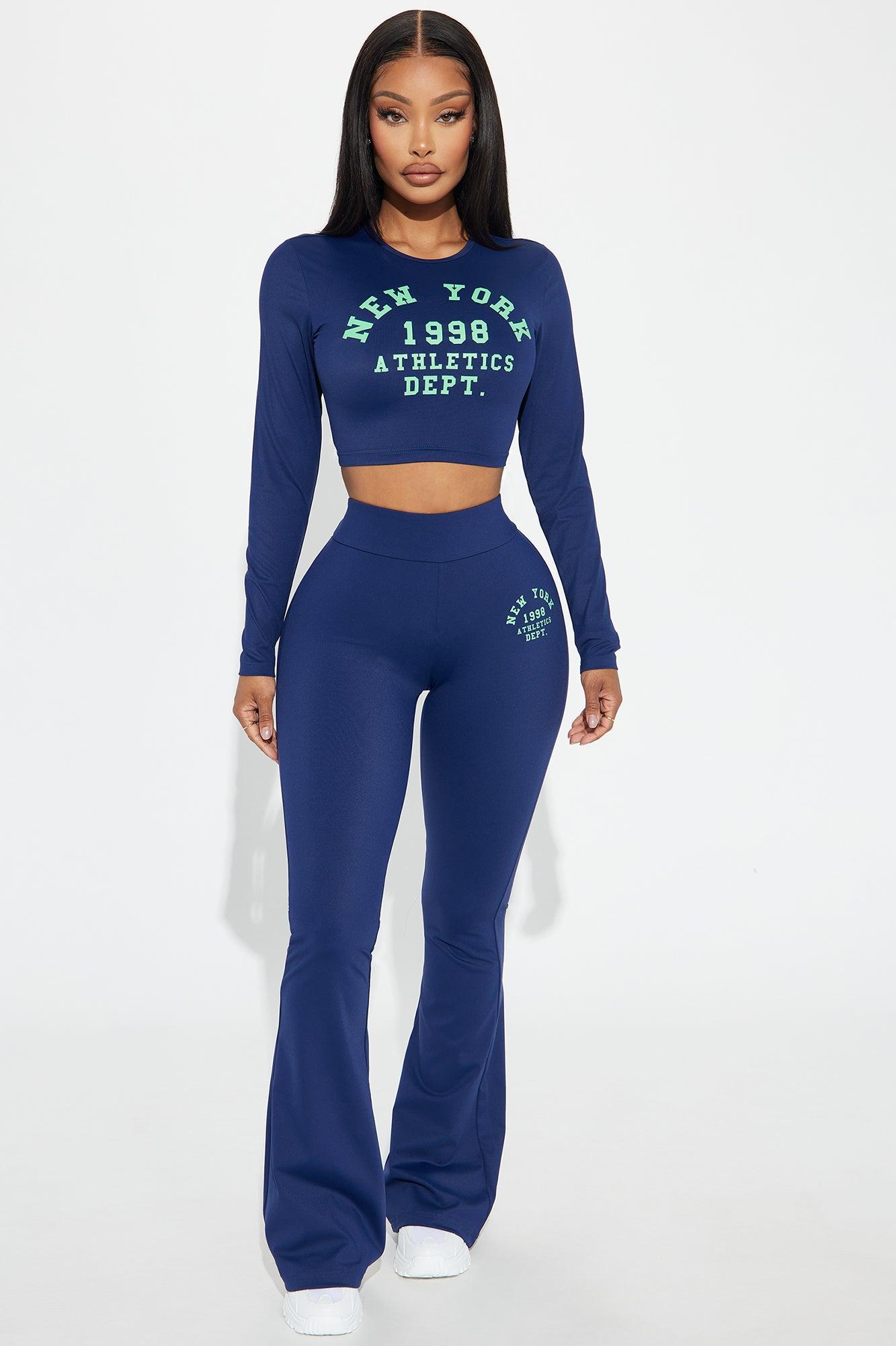 Available In Navy. Active Top Crew Neck Long Sleeve Compression Graphic Detail Low Impact Cropped Stretch Pair With "New York Athletics Yoga Pant" Disclaimer: Due To The Printing Process A Difference In Saturation May Occur. Each Garment Is Unique. 75% Nylon 25% Spandex Imported