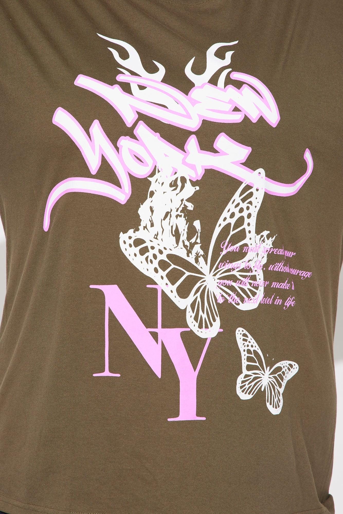 New York Butterfly Oversized Tee - Dark Olive Female