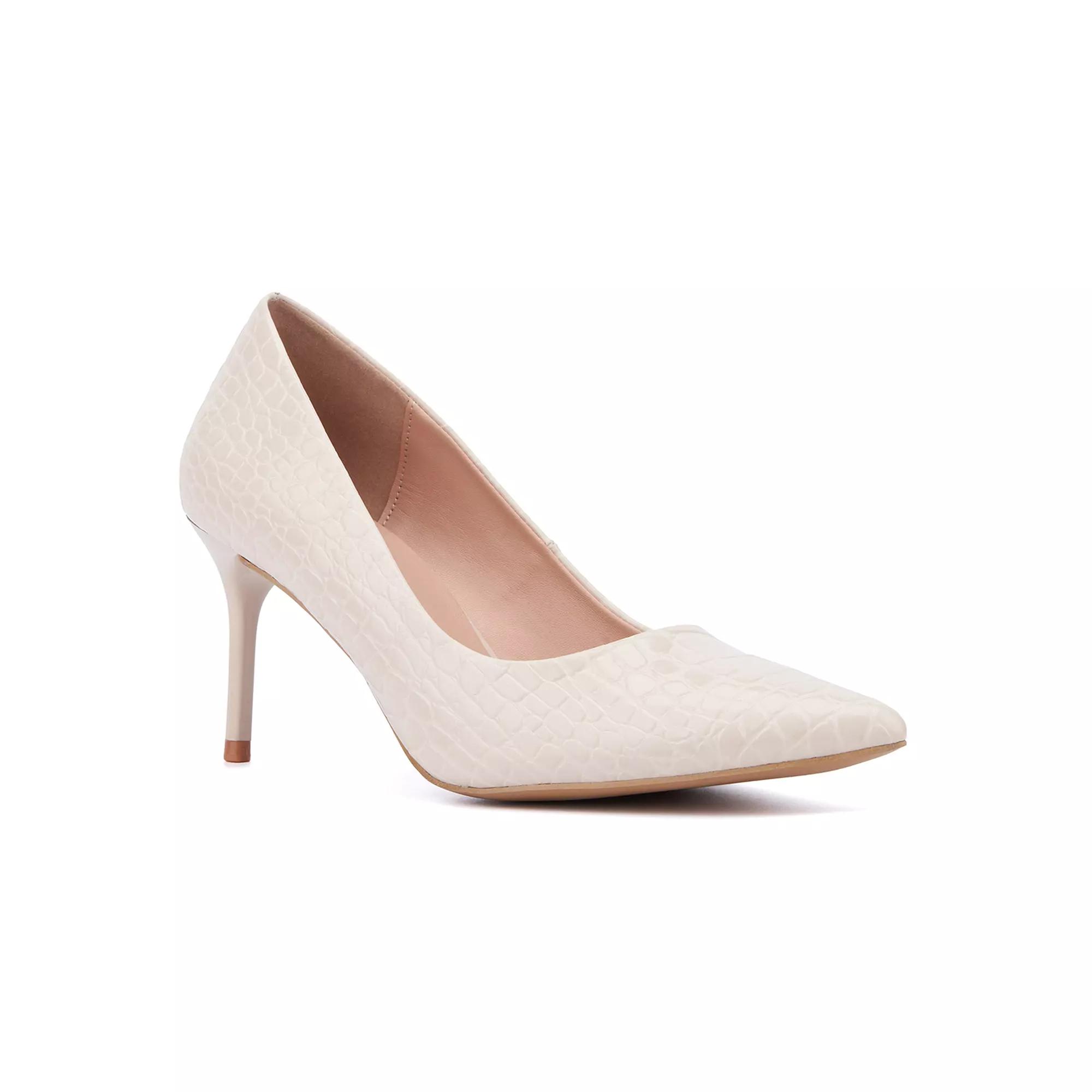 Stylish and timeless, these classic womens Belle high-heeled pumps from New York & Company will elevate any look and provide a flattering and feminine silhouette. Stylish and timeless, these classic womens Belle high-heeled pumps from New York & Company will elevate any look and provide a flattering and feminine silhouette. FEATURES Cushioned insolesDETAILS Faux-leather & fabric upper Faux-leather lining Foam midsole Rubber outsole Pointed toe Slip-on Heel height: 3 Spot clean Imported Size: 6. Color: Natural. Gender: female. Age Group: adult.