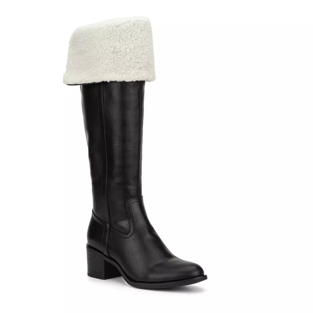 Step into cozy yet fashionable style with these New York & Company Devi women's sherpa knee-high boots.Click this FOOTWEAR GUIDE to find the perfect fit and more! Step into cozy yet fashionable style with these New York & Company Devi women's sherpa knee-high boots. Click this FOOTWEAR GUIDE to find the perfect fit and more! BOOT FEATURES Soft sherpa cuff Zipper for easy on and offBOOT CONSTRUCTION Polyurethane, sherpa upper Polyester lining TPR outsoleBOOT DETAILS Round toe Zipper closure Padded footbed 2.2-in. heel 15-in. shaft 15-in. circumference Size: 9. Color: Black. Gender: female. Age Group: adult.