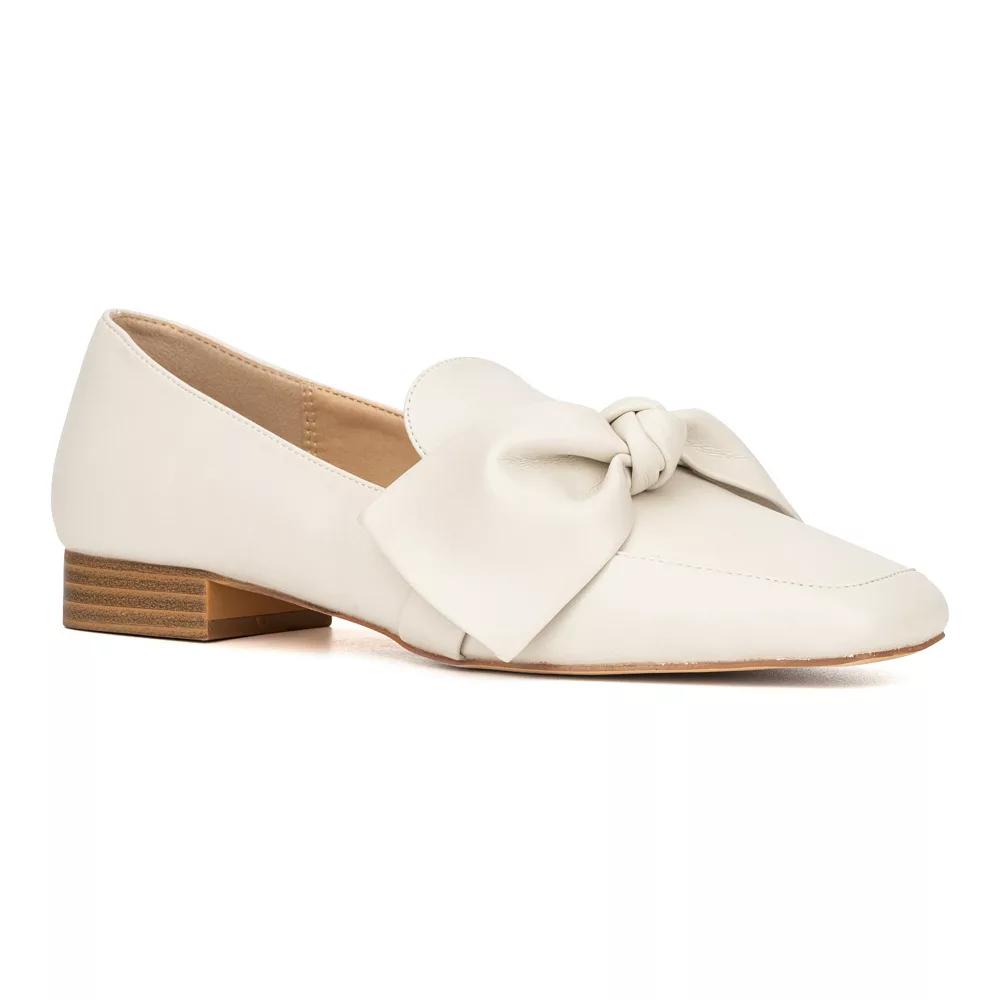 Step into a chic look with these New York & Company Dominca women's loafers. Click this FOOTWEAR GUIDE to find the perfect fit and more! - https://www.kohls.com/feature/shoesizeguide.jsp. SHOE FEATURES: Bow detail, Low block heel. SHOE CONSTRUCTION: Faux leather upper, Polyurethane lining, Rubber outsole. SHOE DETAILS: Round toe, Slip-on, Padded footbed, Spot clean, Imported. Size: 8.5. Color: Bone. Gender: female. Age Group: adult. Material: SYNTHETIC.