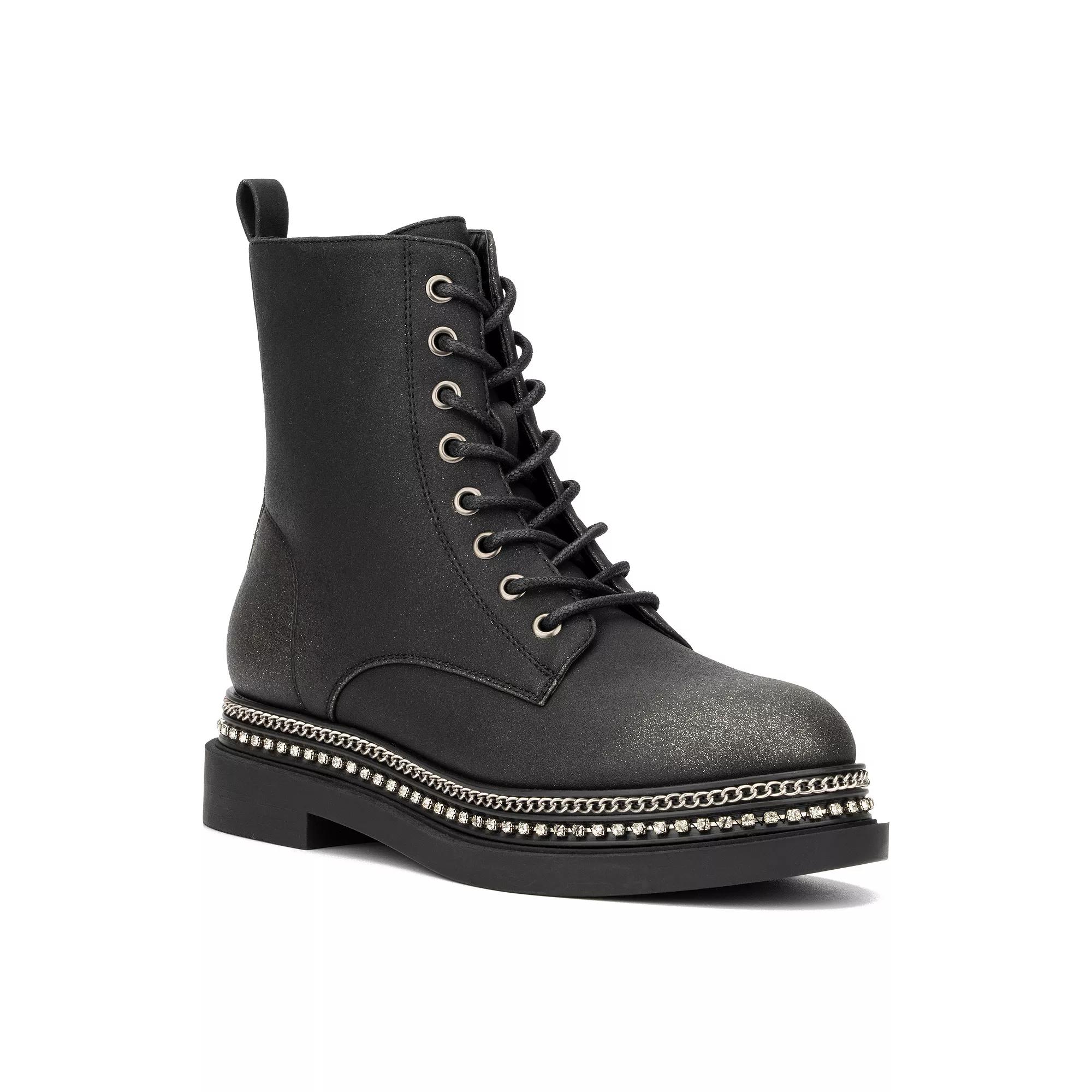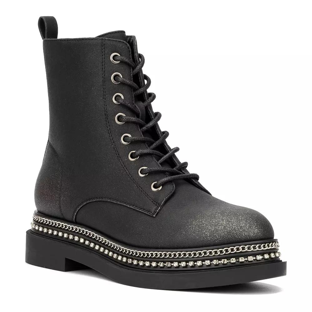 Add a little edge to your looks with these New York & Company Kadence womens combat boots.Click this FOOTWEAR GUIDE to find the perfect fit and more! Add a little edge to your looks with these New York & Company Kadence womens combat boots. Click this FOOTWEAR GUIDE to find the perfect fit and more! SHOE FEATURES Rhinestone and chain link accents Side zipper for easy on and offSHOE CONSTRUCTION Faux leather upper Fabric lining Rubber outsoleSHOE DETAILS Round toe Lace-up and zipper closure Padded footbed 6.3-in. Shaft 11.02-in. Circumference Size: 10. Color: Black Glitter. Gender: female. Age Group: adult.