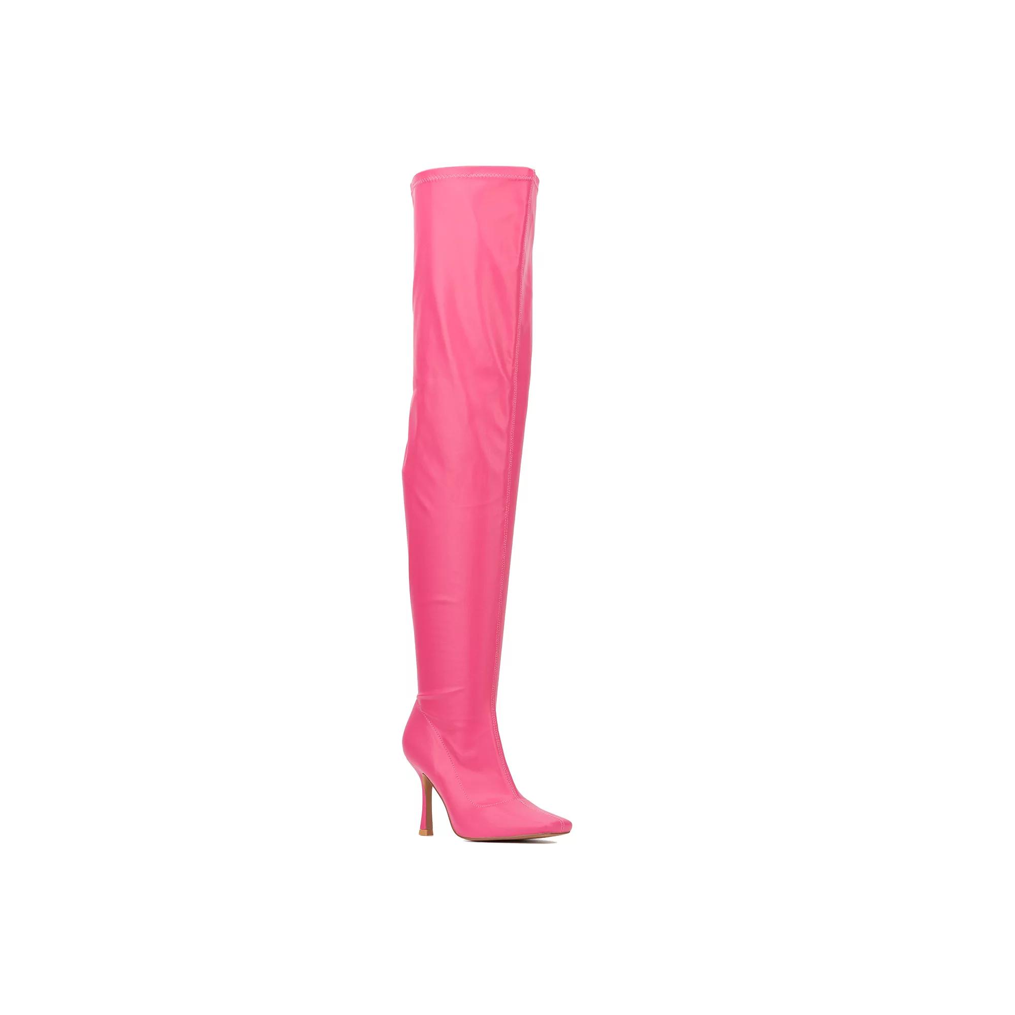 Boasting an over the knee style, the Natalia boot makes a stylish statement. It features a spool heel, wide shaft, fitted design and pointed toe. Upper: 100% Faux Leather Outsole: 100% Rubber Lining: 100% Fabric Heel height: 3.8" Shaft height: 25" Shaft circumference: 10.8" | New York & Company Women's Natalia Tall Boot, Pink, 6.5M