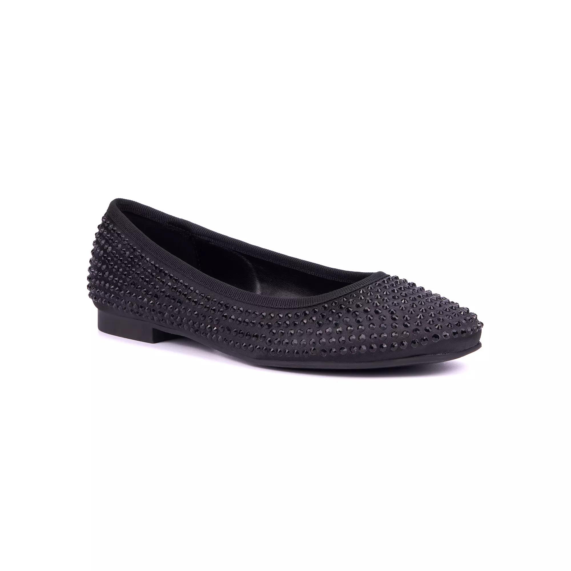 Discover the perfect blend of classic elegance and modern flair with New York & Company's dazzling ballet flats. Adorned with stunning rhinestone embellishments, these shoes are the ideal finishing touch to elevate any outfit, ensuring you shine bright in every occasion. Click this FOOTWEAR GUIDE to find the perfect fit and more! - https://www.kohls.com/feature/shoesizeguide.jsp. FEATURES: Rhinestone embellishments. DETAILS: Satin upper, Faux leather lining, Thermoplastic rubber outsole, Square toe, Pull-on, Spot clean, Imported. Size: 8. Color: Black. Gender: female. Age Group: adult. Material: SYNTHETIC.