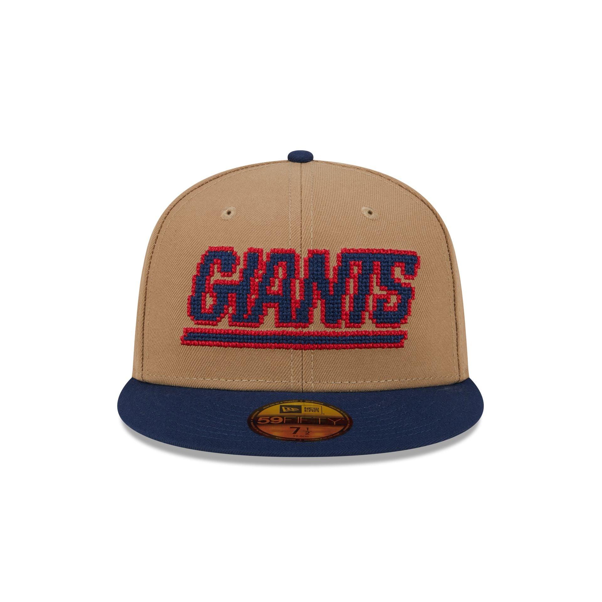 The New York Giants Classic 8-Bit Wordmark 59FIFTY Fitted Cap featured an embroidered Giants Historic 8-bit stitch wordmark at the front panels. Additional details include a team wordmark with a matching MLB Batterman logo at the rear and a gray undervisor.