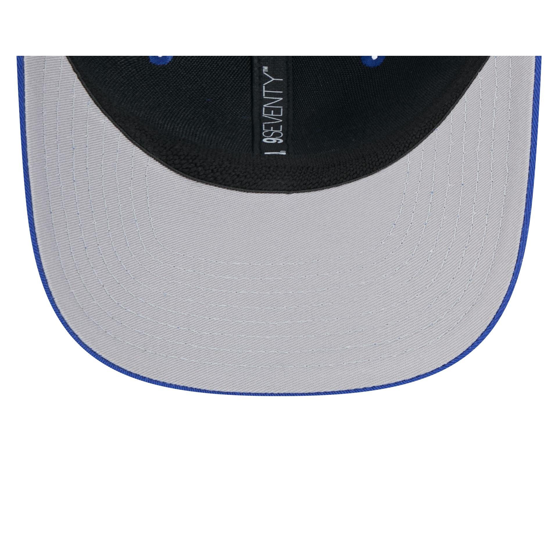 The New York Giants Labeled 9SEVENTY Stretch-Snap Cap features an embroidered Giants Inaugural Year patch at the front panels with a matching New Era Flag at the left-wear side. Additional details include a gray undervisor and a snapback closure at the rear.