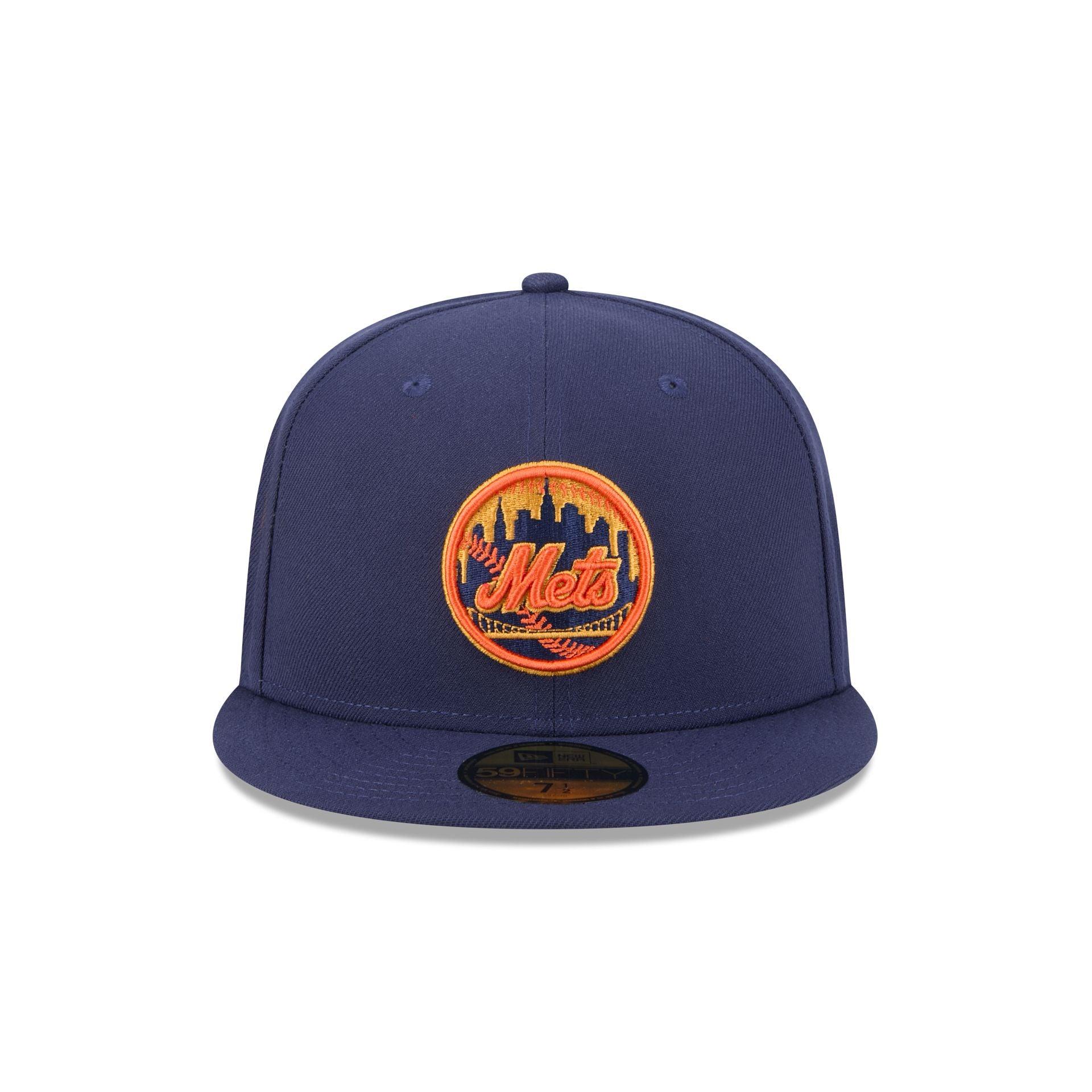 The New York Mets Blue Tartan 59FIFTY Fitted Cap features an embroidered Mets logo at the front panels with a matching MLB Batterman logo at the rear. Additional details include a plaid team patch at the right-wear side and a plaid undervisor.