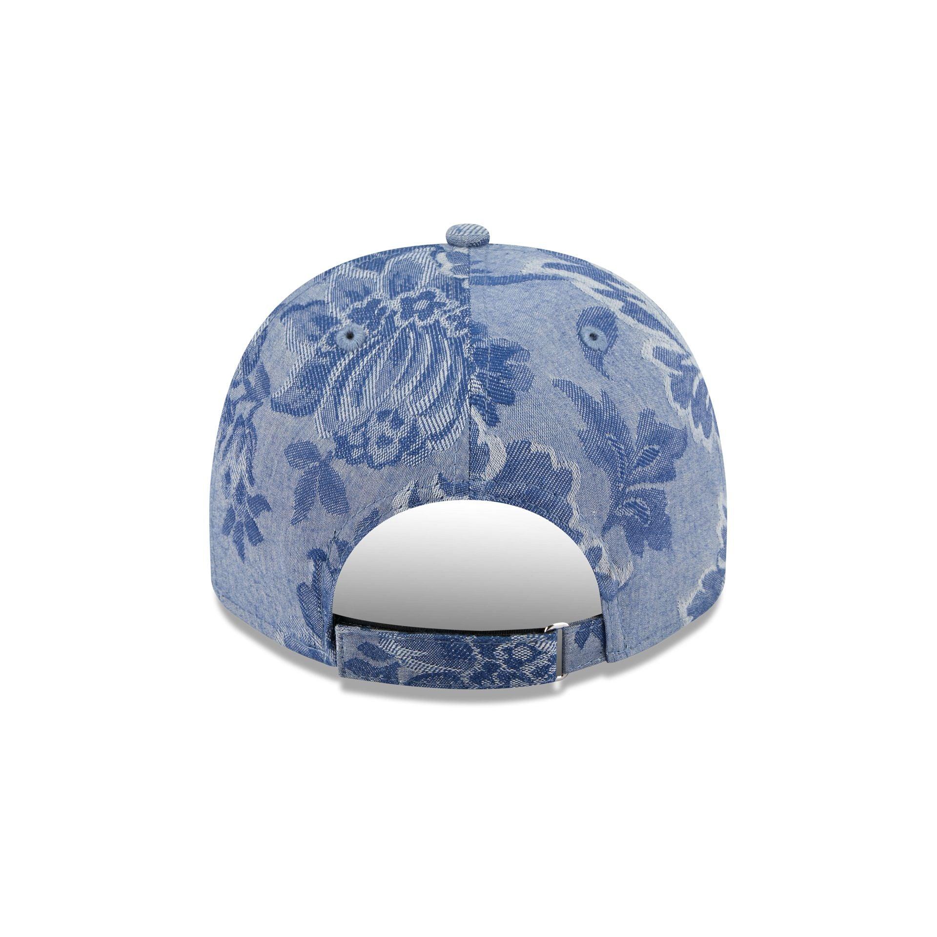 The New York Mets Denim Jacquard Golfer features an embroidered Mets logo at the front panels against a specialty Japanese milled gobline chambray fabrication from Three Looms Japan Fabrics throughout the cap. Additional details include a team wordmark at the right wear side, an adjustable D-Ring closure at the rear, and a green undervisor.