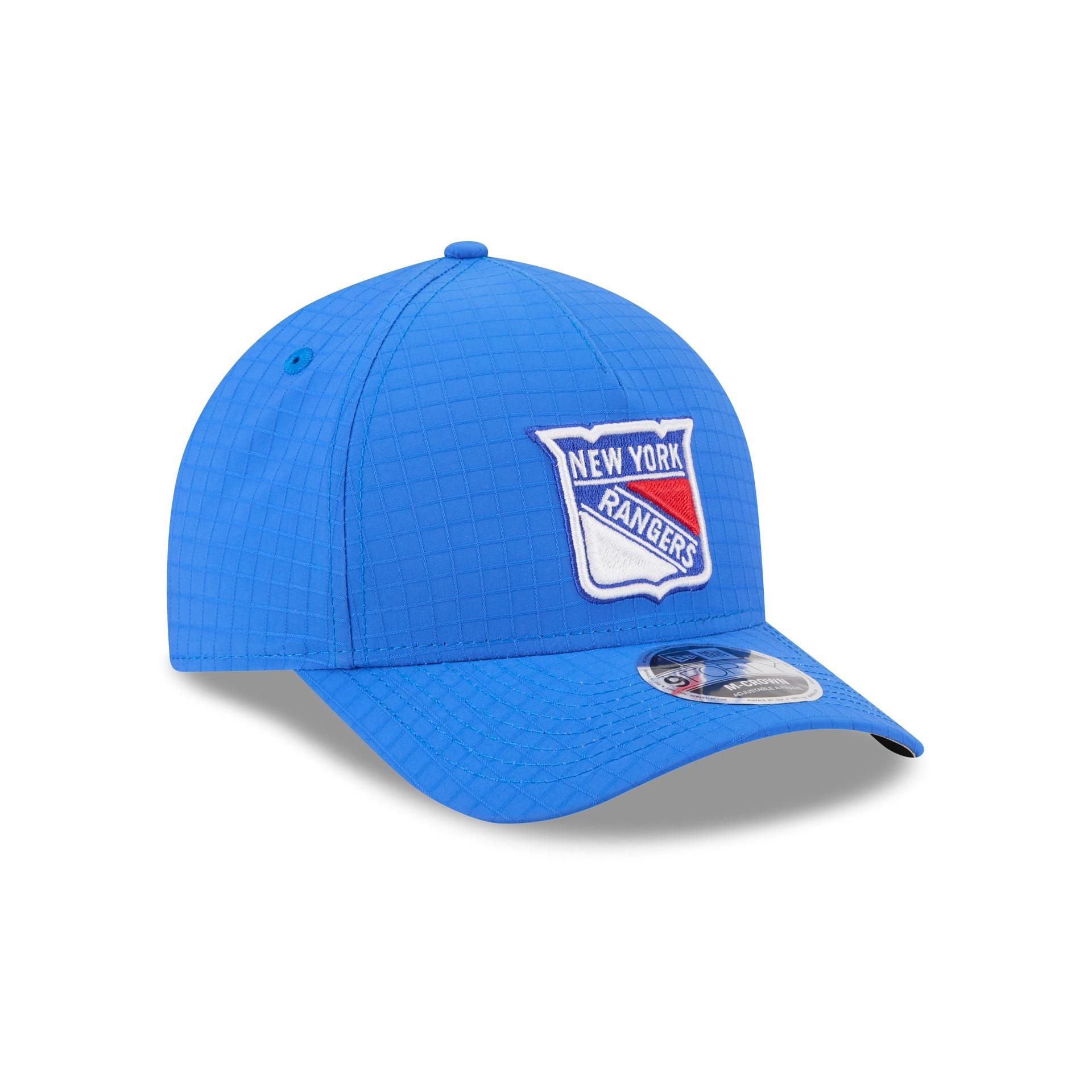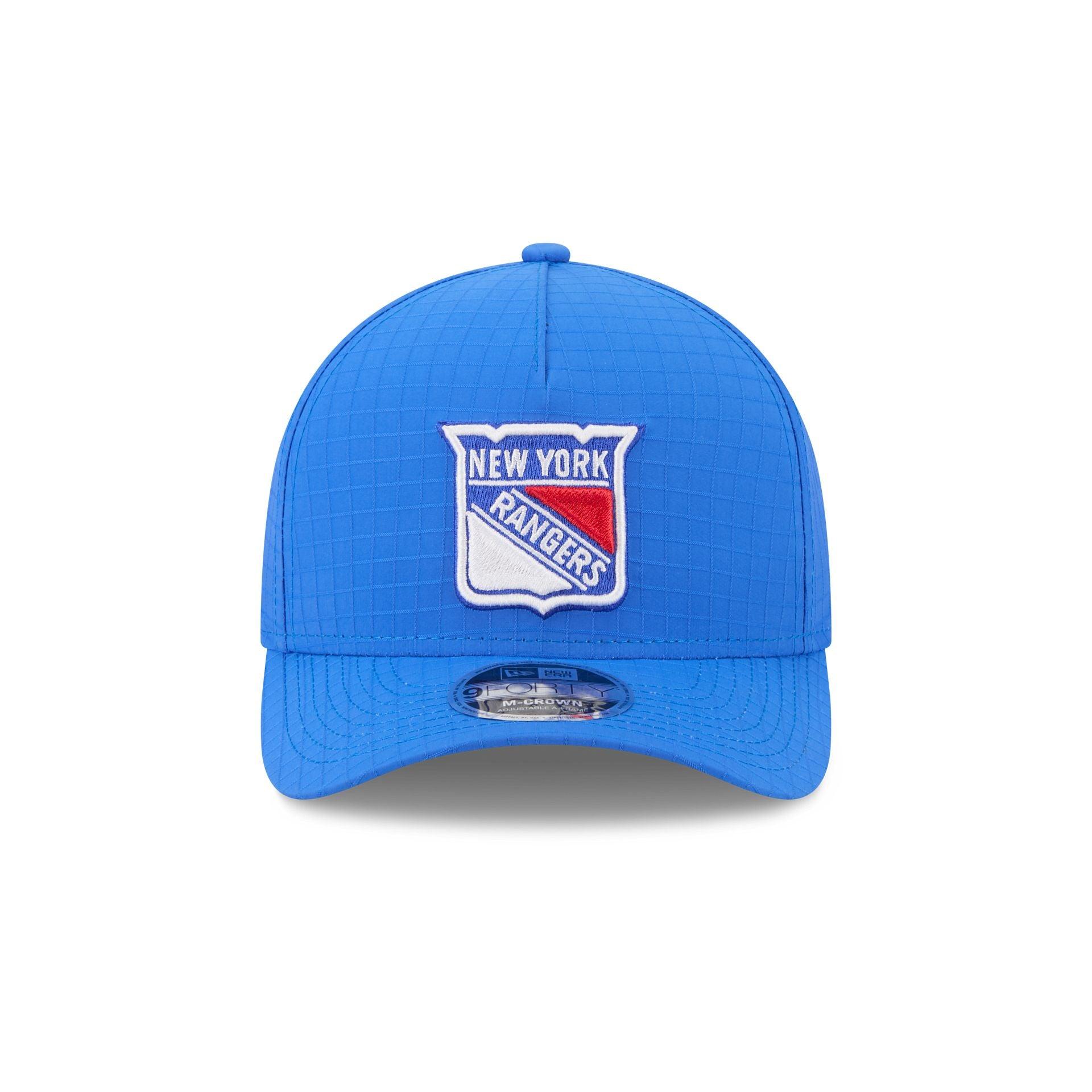 The New York Rangers Ripstop 9FORTY M-Crown A-Frame Snapback features an embroidered Rangers logo at the front panels against a nylon ripstop fabrication throughout the cap. Additional details include an adjustable snapback closure at the rear and a gray undervisor.