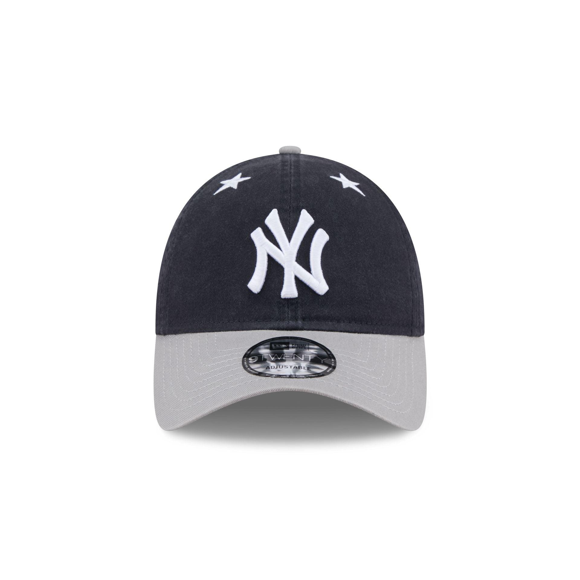 The New York Yankees 2025 All-Star Game 9TWENTY Adjustable Cap features an embroidered Yankees logo and stars at the front panels with a 2025 All-Star Game patch at the right-wear side. Additional details include the MLB Batterman logo above an adjustable D-Ring closure at the rear and a black undervisor.